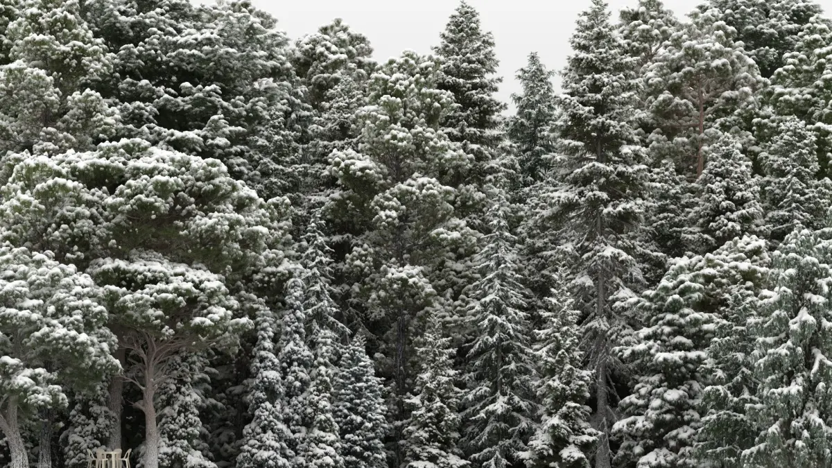package contains 16 type of pine trees and every type has 5 sizes and variations. also every tree has snowy version. 80 summer and 80 winter pine tree models in total. winter trees are exactly the same summer trees with snow.