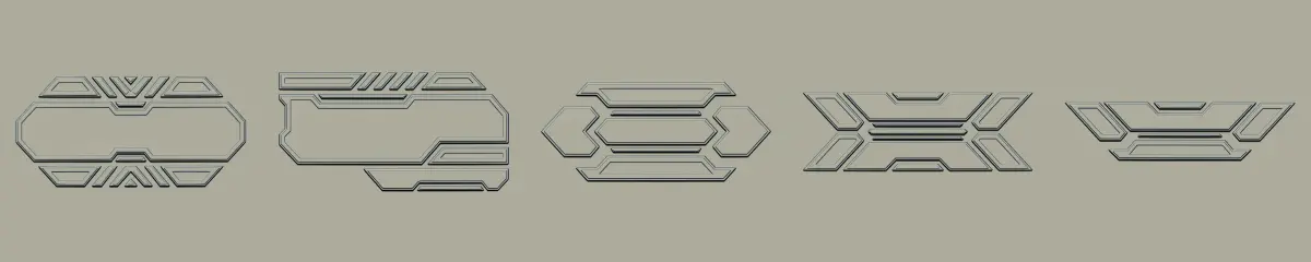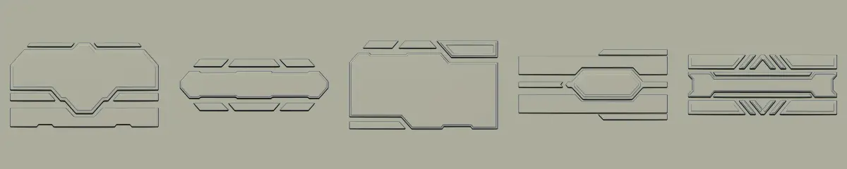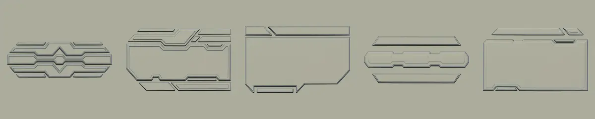 80 Sci-Fi Hardsurface Alpha Maps designed specifically for hardsurface model detailing, texturing and sculpting. All ready for commercial use.