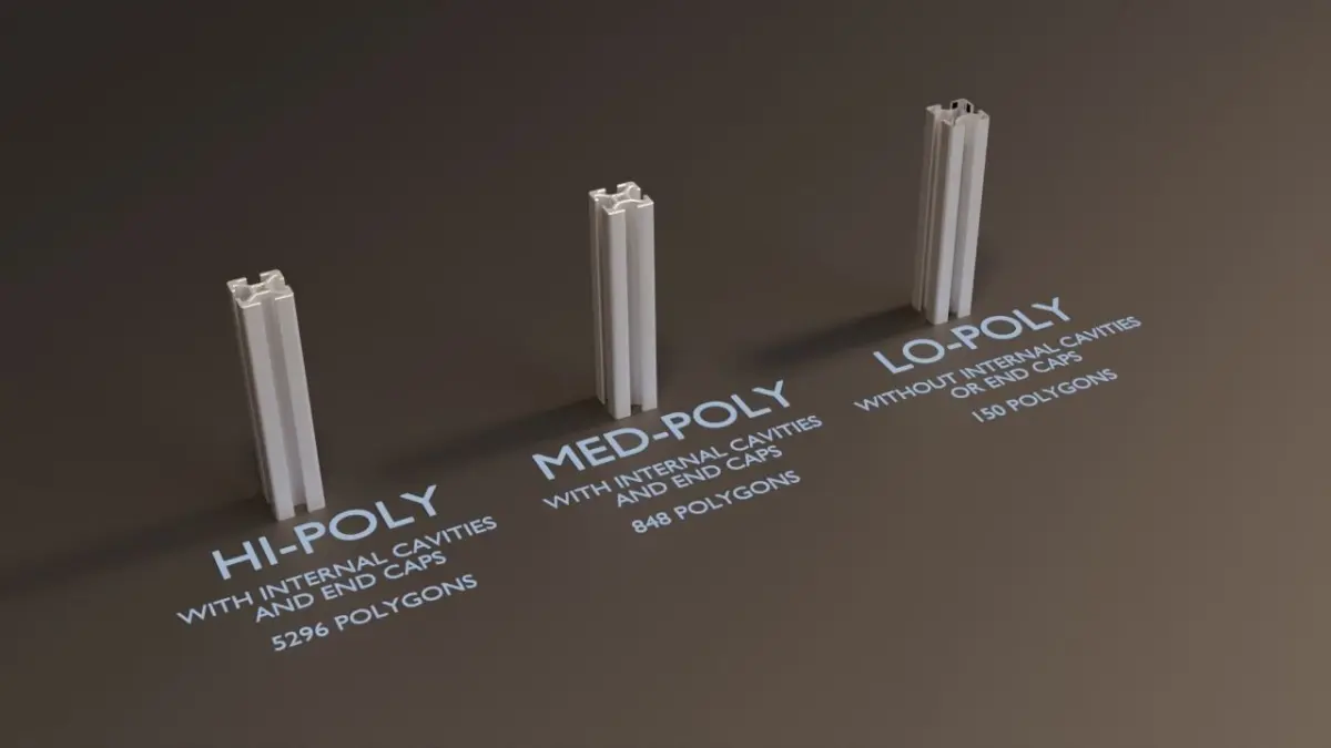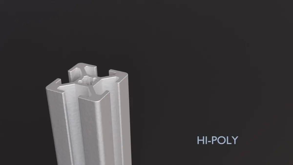 20mm aluminum extrusion modeled in Blender and drawn to real world dimensions. It comes in 3 different version. The Hi-poly version has 5296 polygons, the Me-poly version has 848 polygons and the Lo-poly version has 150 polylgons. These models are drawn 100 mm long, but they are easy to scale to increase the length as needed.