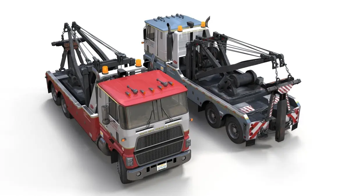 80's American tow truck game ready model. Full textured model with clean topology.