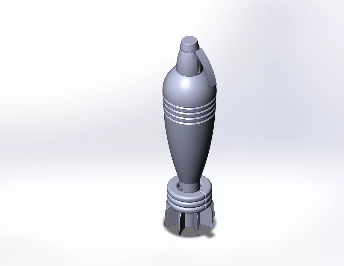 The stabilizer provides in-flight stability. It consists of a tube with fins welded to it. The primary charge is inserted into the stabilizer tube, and the additional charges are fitted externally. The stabilizer tube has holes for venting propellant gases from the primary charge and for igniting the additional increments.