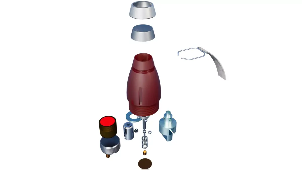 The fuze body is made of plastic. A thin copper diaphragm is secured on the fuze head by means of a conical ring. To ensure sealing, the diaphragm’s outer conical surface and the ring’s inner conical surface are coated with red lead (lead tetroxide) diluted with oil varnish.