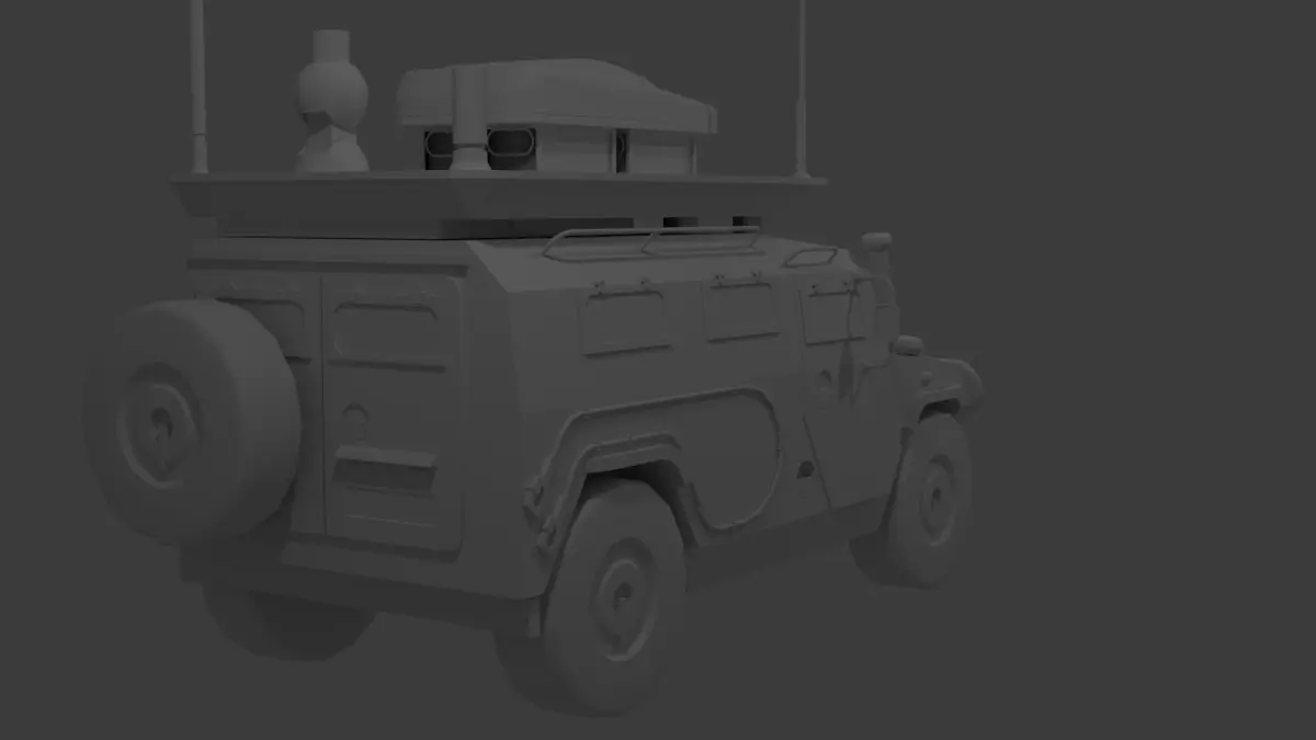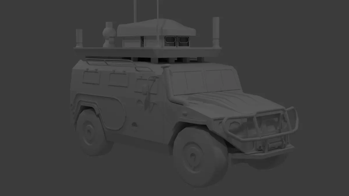 Russian military Anty Drone System REB based on Tiger. Electronic Warfare System (EWS) based on Tiger. Optimazed game-ready model. Named 85Ia6(layer-2). But without materials. All face oriantation in normal. Military mashine with skeleton mesh. Model ready for military game/simulator. Polygons - 15558 Vertices - 8999