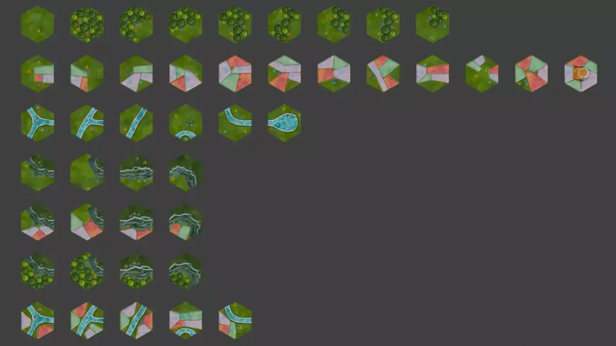 Whether you're building a relaxing puzzle game or a detailed strategy experience, this hex tile set is a solid foundation to bring your world to life.