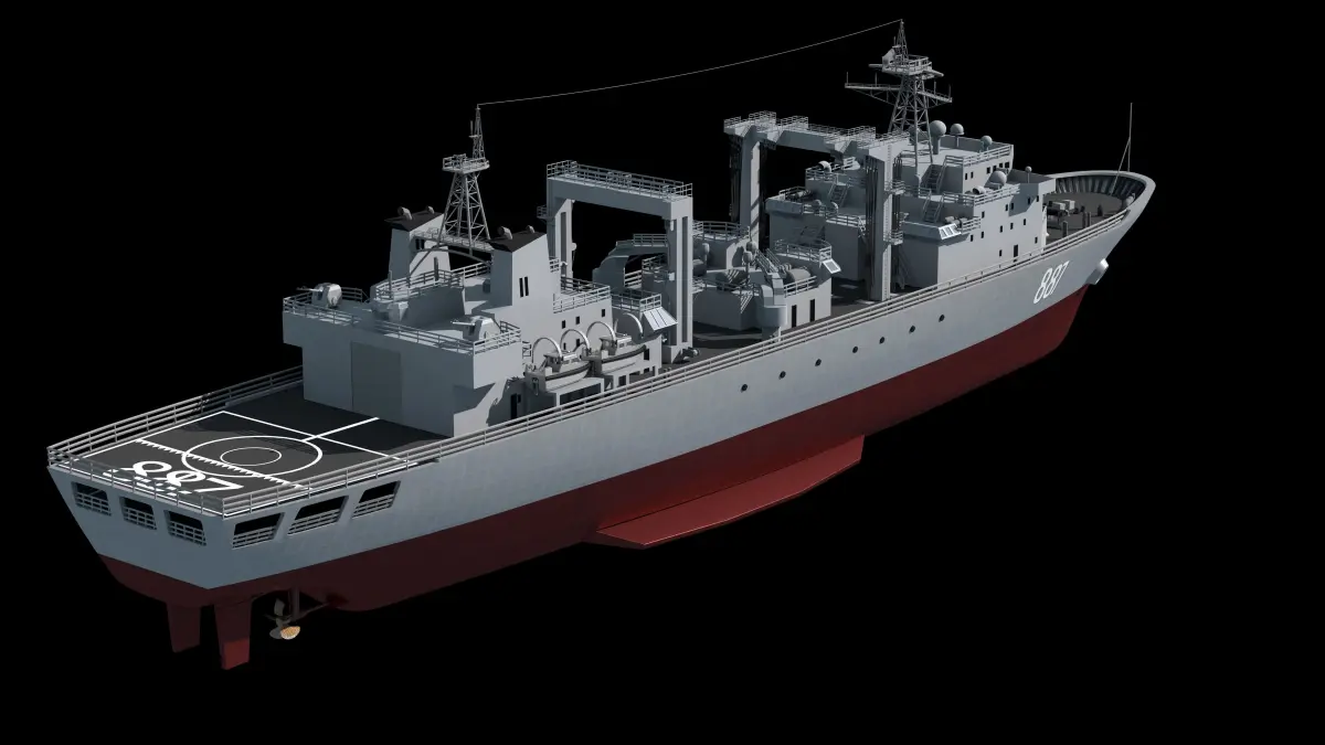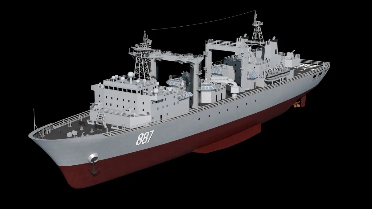 886 Qiandaohu integrated supply ship, the first type 903 (called Fukuchi-class by NATO) ocean-going supply ship.It is the first comprehensive supply ship of the Chinese Navy with a truly modern configuration.The wiring is neat, the shape is accurate, and the material map effect is good