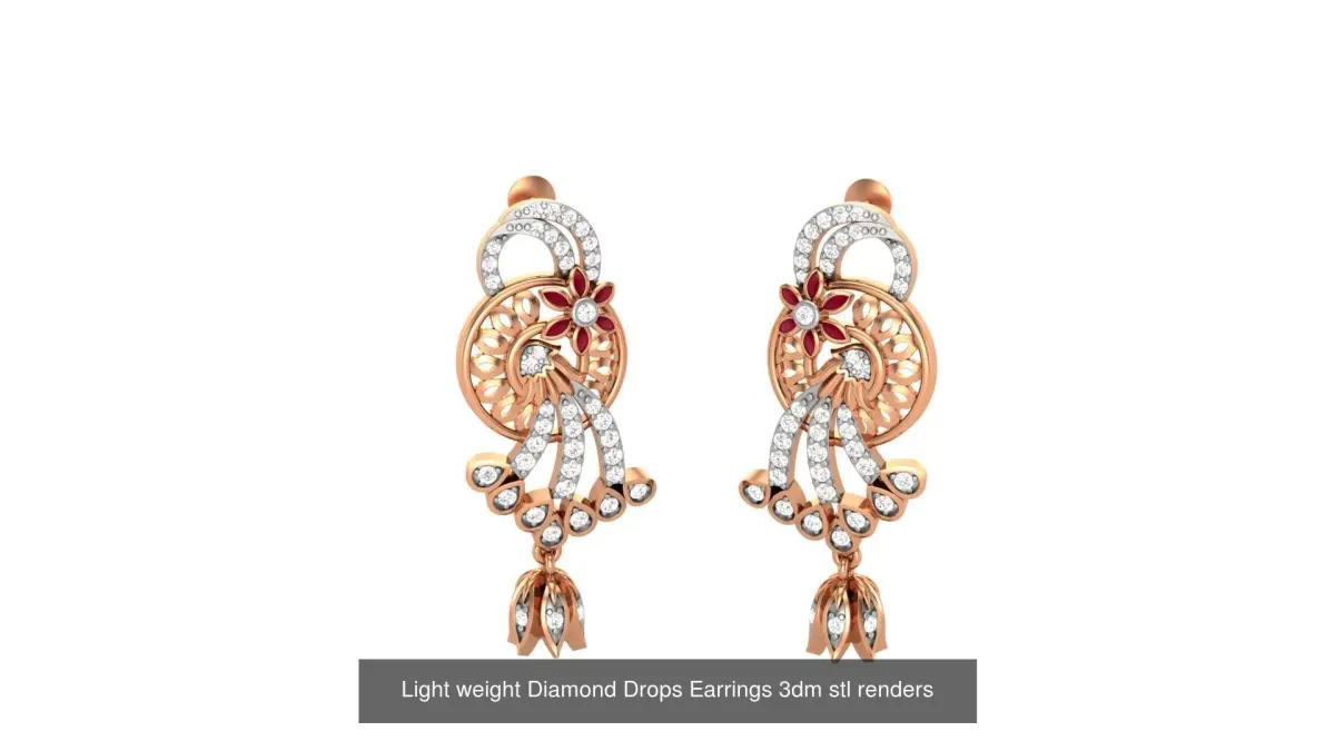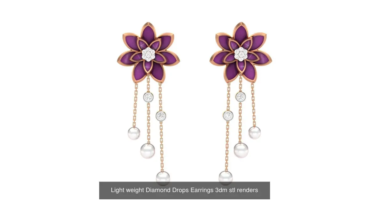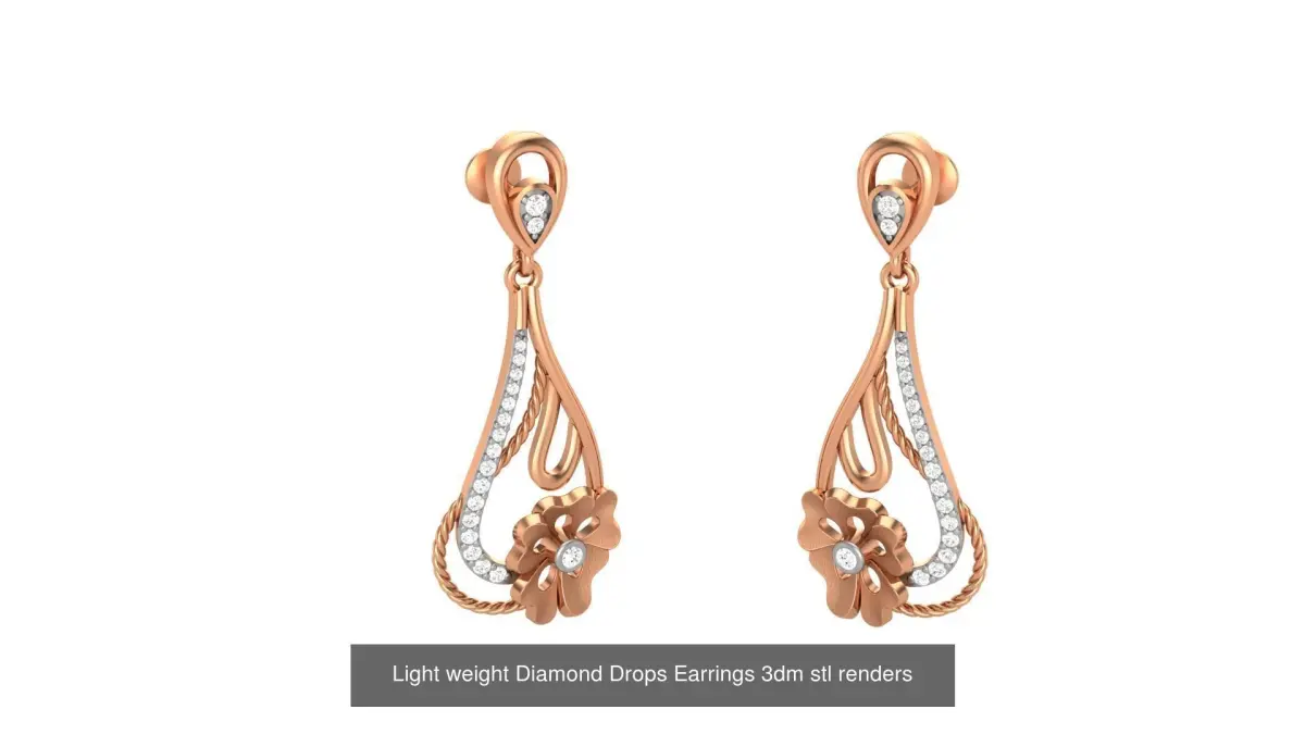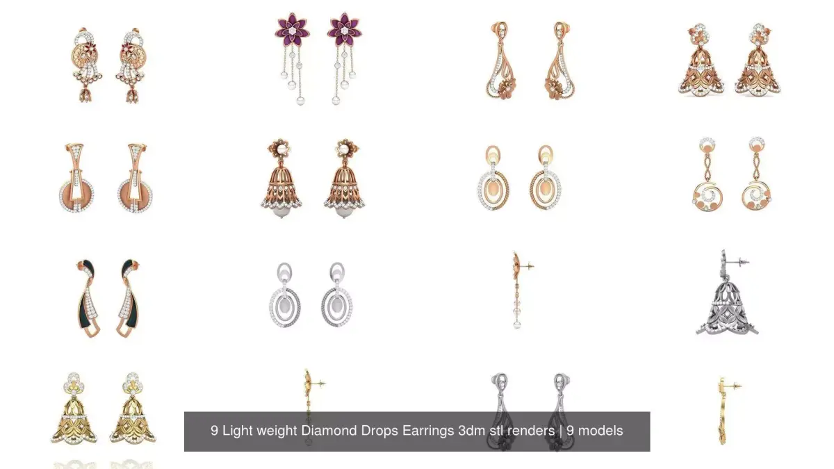 - 9 Light weight Diamond Drops Earrings 3dm stl renders