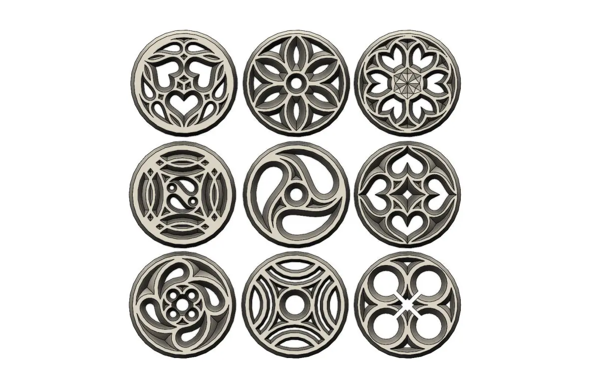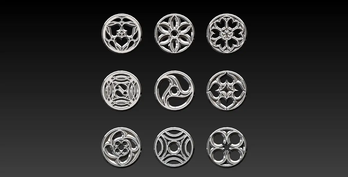 OD 35mm and 3mm thickness plus 1mm thickness for the flat motifs with the possibility to be scaled.Possible applications: wood engraving, cnc, architectural design, decor and as an asset for renders and presentations.Made in solidworks 2020.Provided with slt, iges, step, obj for 3d printing and dxf for laser cutting/engraving.To be used by jewelry designers ,craftsmens and architects. Please contact us for any inquiries and modifications.