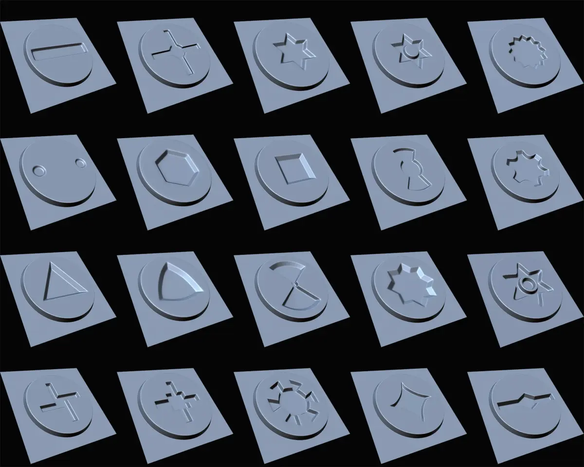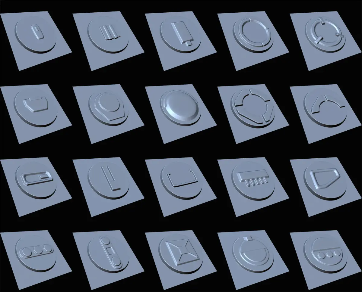 90 Hardsurface Alpha Maps are designed for hard surface model detailing, texturing, and sculpting. All ready for commercial use.