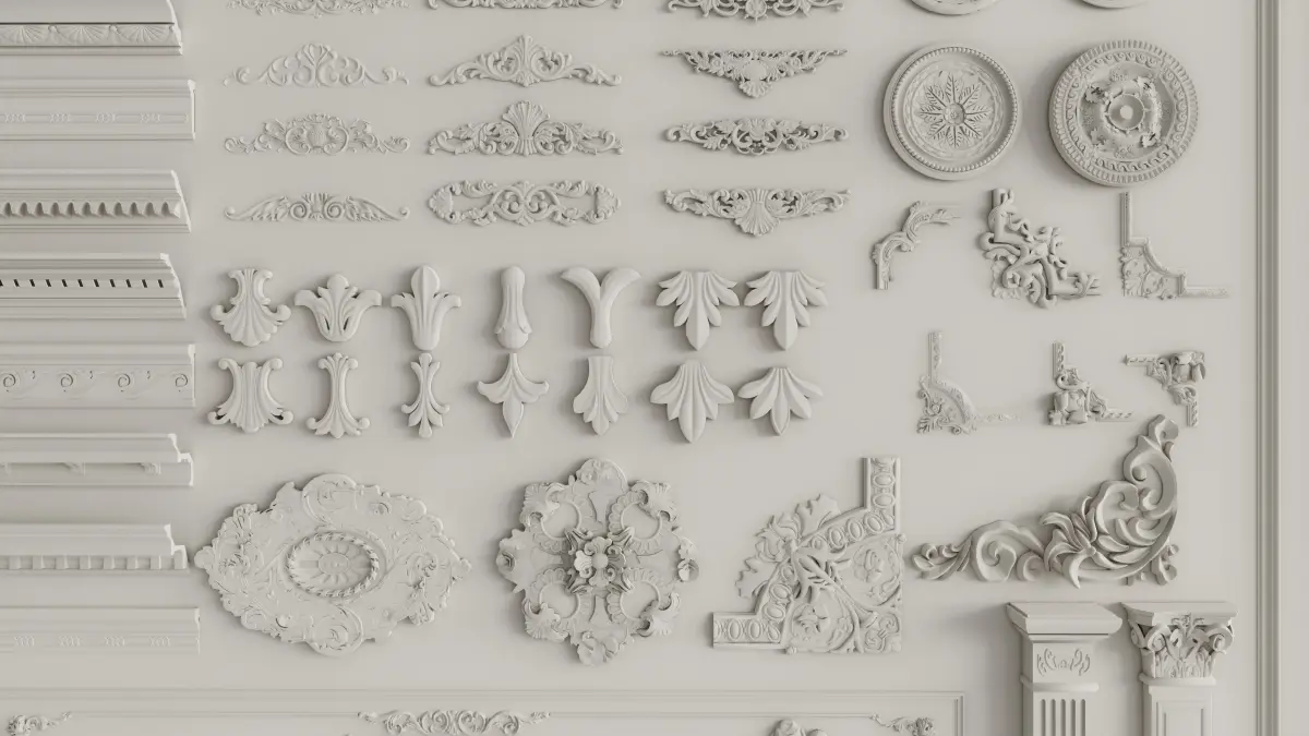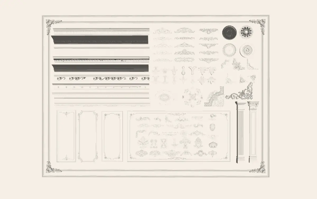 These components of corner decorations, plaster moldings and Roman columns are created by SketchUp, with high precision and can be directly applied in your artistic design.