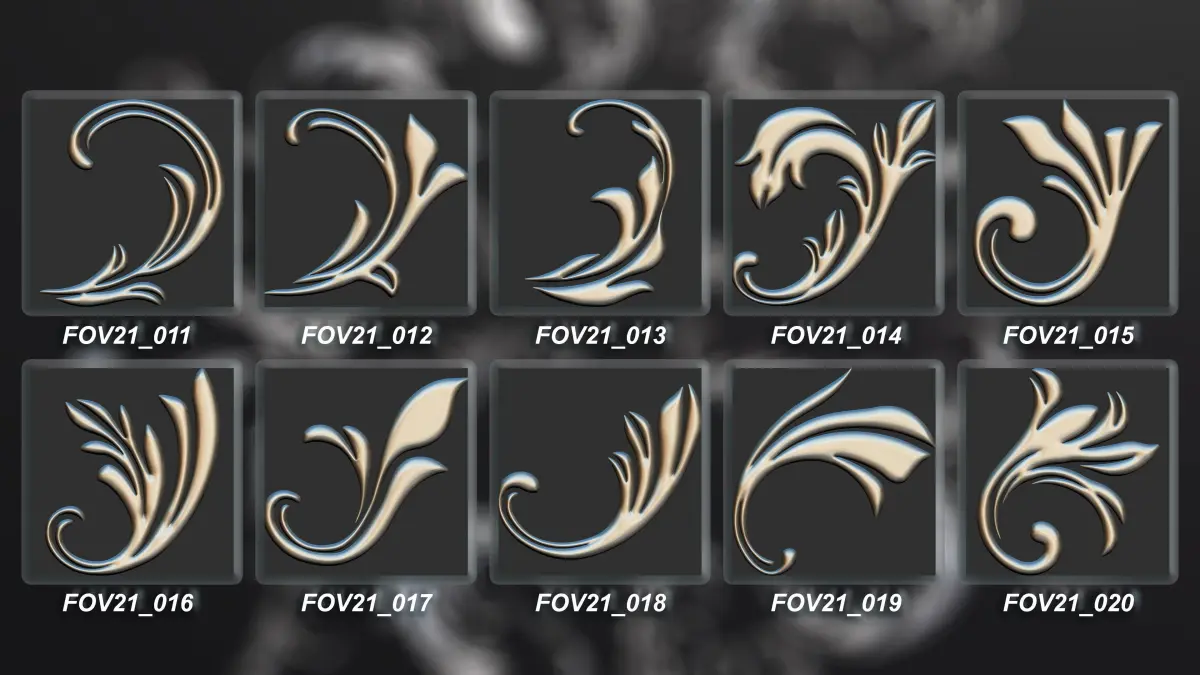 - 94 Ornamental Elements Brush + Alpha + 3D Model Vol 20