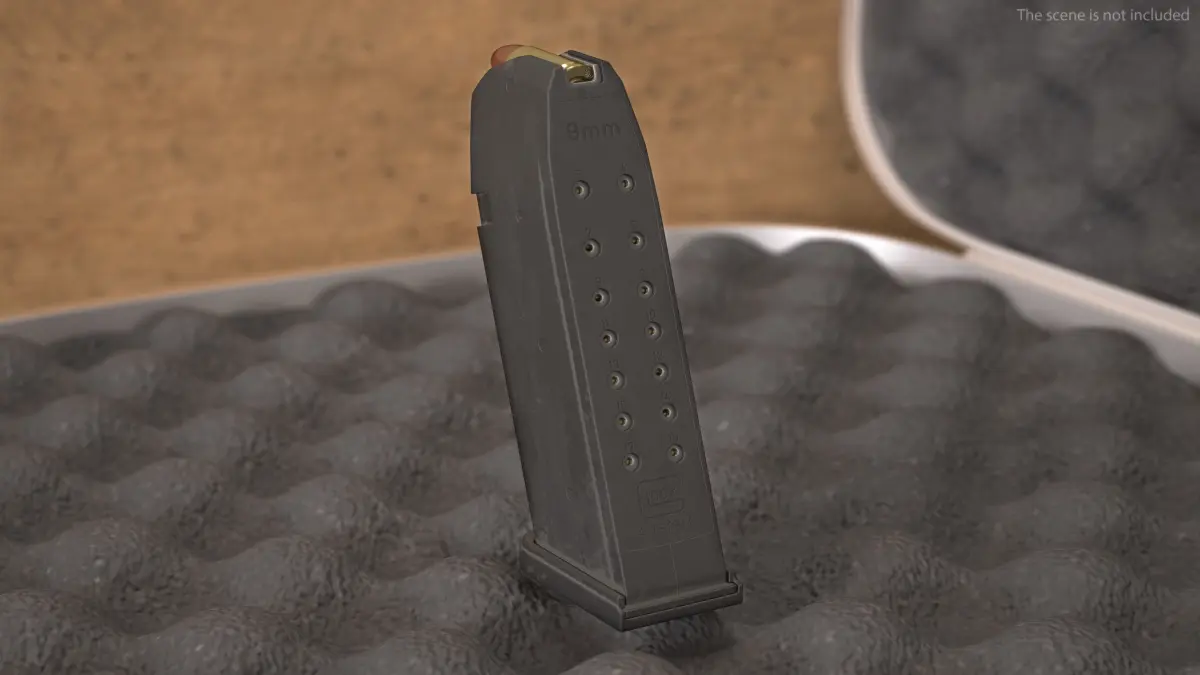 9MM 10 Round Magazine is a 3d model of type of ammunition feeding device designed to hold and supply 10 rounds of 9mm ammunition to a firearm.
