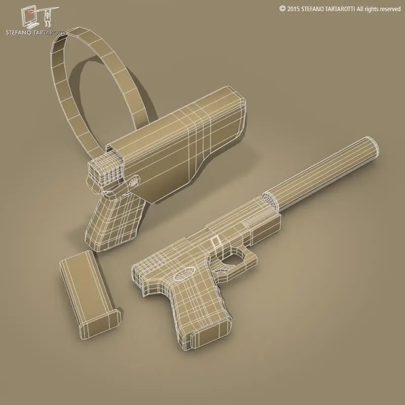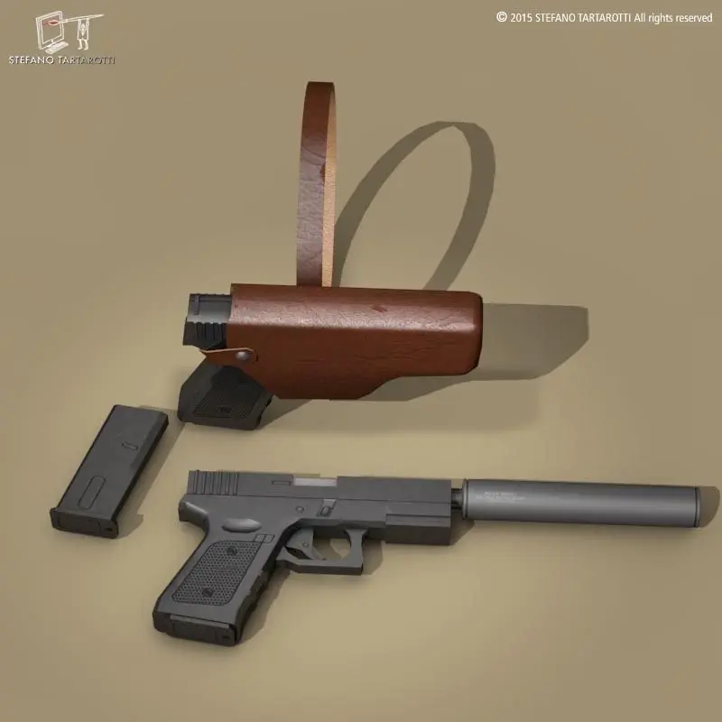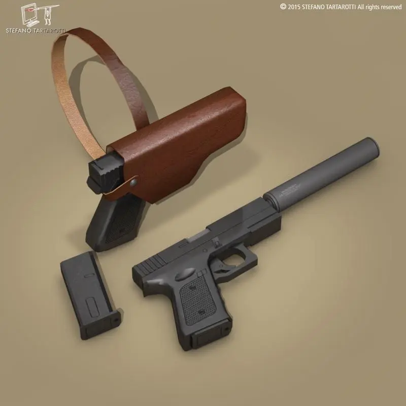 generic 9mm handgun with holster and silencer.The model is textured.Made in cinema4d R12. Other formats have textures too. .fbx format is good for importing in 3dstudio max and Maya.Polygons 2824Vertices 2829If you like the model please rate it.