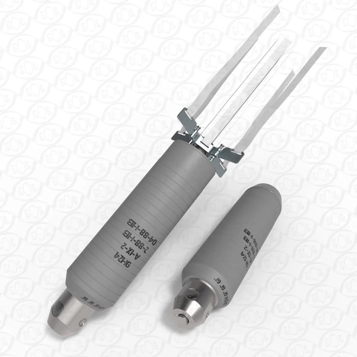position in flight by attached nylon straps. The fuze is triggered upon impact