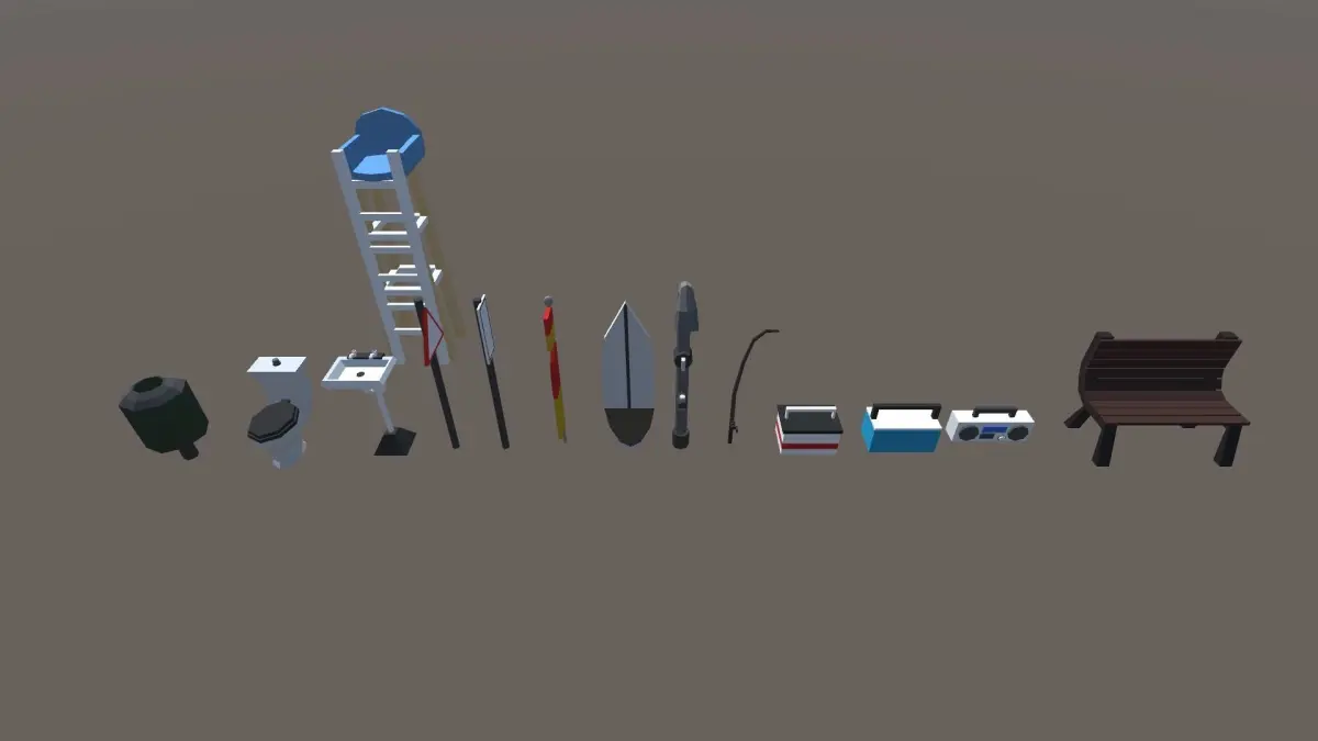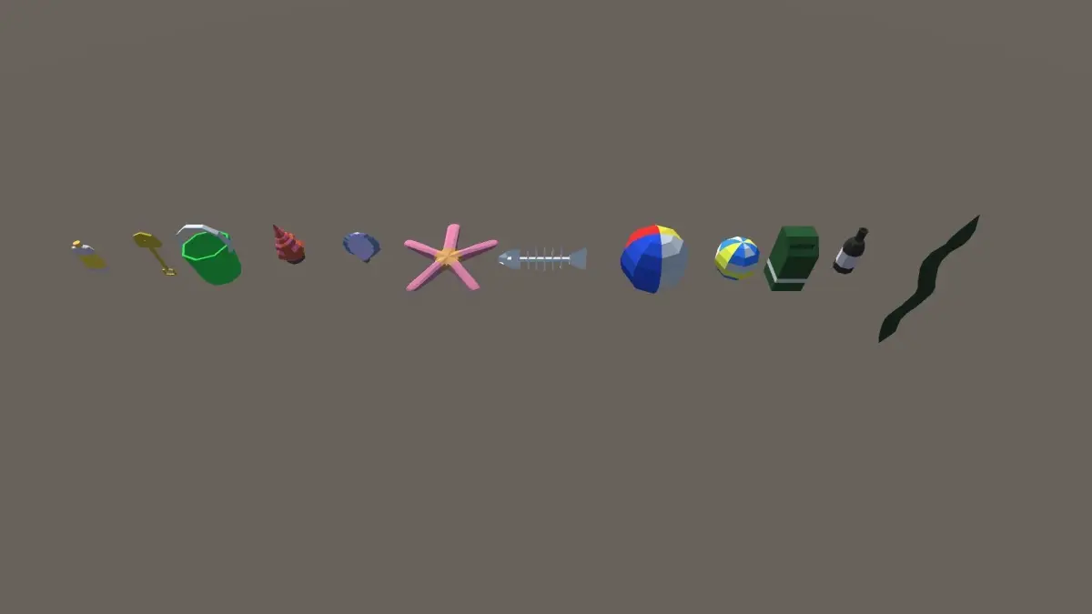 In this pack includes 39 3d Low poly beach themed models, great for any low poly game requiring a beach setting. Model colors can be changed into your personal preference by swapping materials. Models; Bathroom Sink, Bathrooms, Beach Ball, Beach Flag, Beach Shower, Beach Umbrella, Beer Bottle, Bench, Board Walk, Boat, Boom Box, Bucket, Dog Bag Dispenser, Esky, Fish Bones, Fishing Rod, Food Cart, Footpath 1, Footpath 2, Life Guard Seat, Life Guard Tower, Pale, Seaweed, Shell 1, Shell 2, Sign 1, Sign 2, Stair Cube, Stairs, Starfish, Sunscreen, Surfboard, Tackle box, Toilet, Towel, Volleyball, Volleyball Net, Volleyball Outline, Waste Bin.