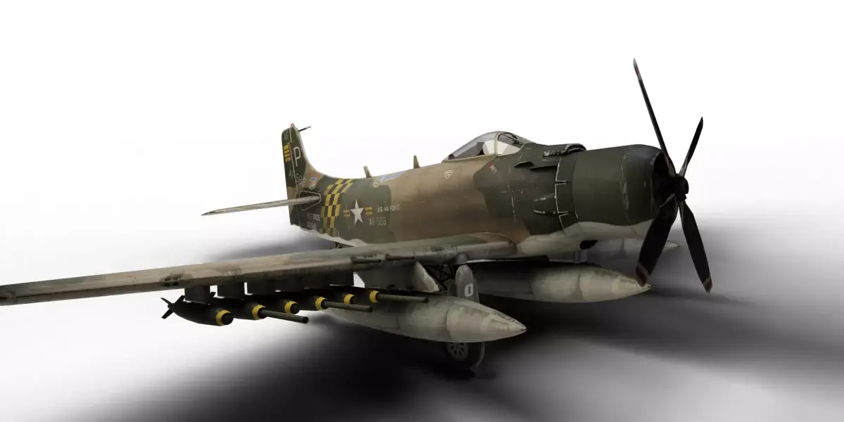 This highly detailed A-1 Skyraider Attack Aircraft Blender 3D model captures the rugged and battle-worn look of the historic U.S. Air Force ground-attack fighter. Featuring 4K PBR textures, authentic camouflage paint, operational propeller detailing, realistic weathering, and fully modeled weapon pylons, this model is perfect for animations, games, cinematics, military scenes, historical projects, and VR simulations.The model includes accurate fuselage markings, real-world proportions, and optimized geometry for high-quality rendering while maintaining good performance.