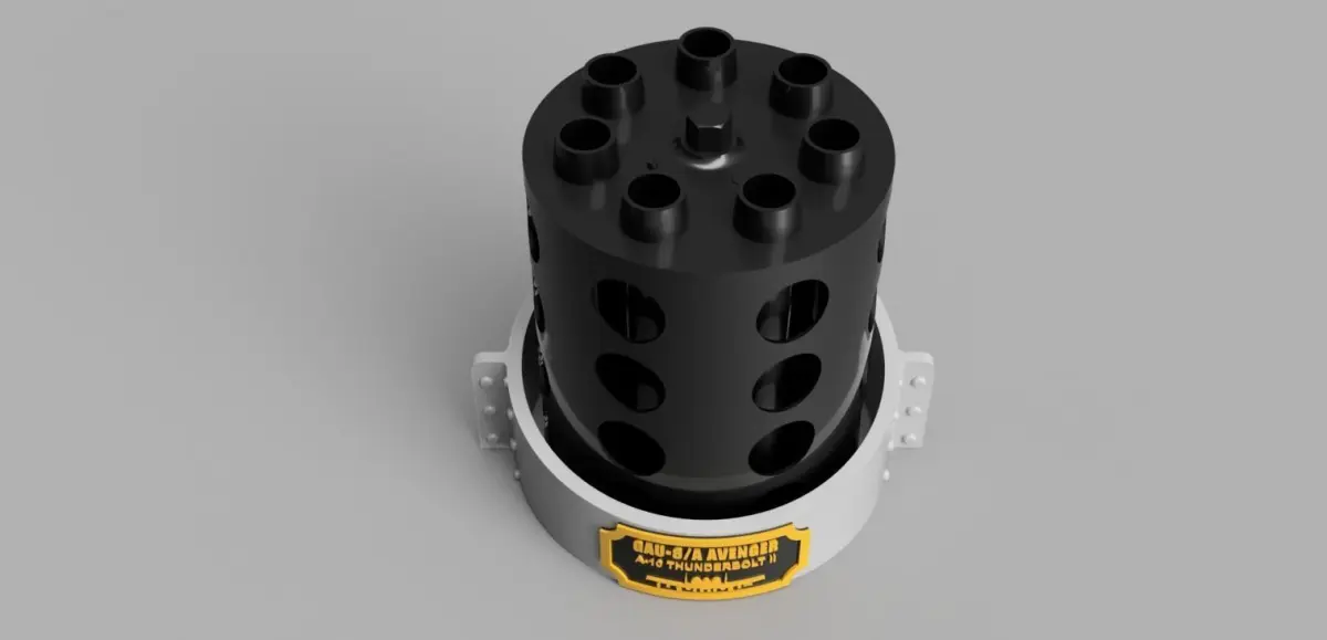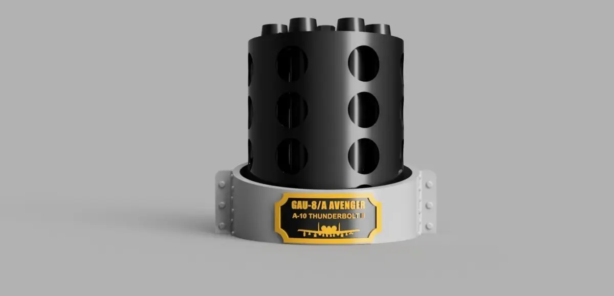 The GAU-8 Avenger Static Display will ensure that you establish and maintain office superiority! This is an accurate 1:1 Scale replica of the GAU-8 Avenger. Precise measurements were taken from the A-10 itself.