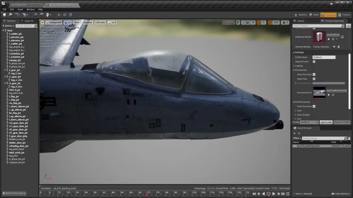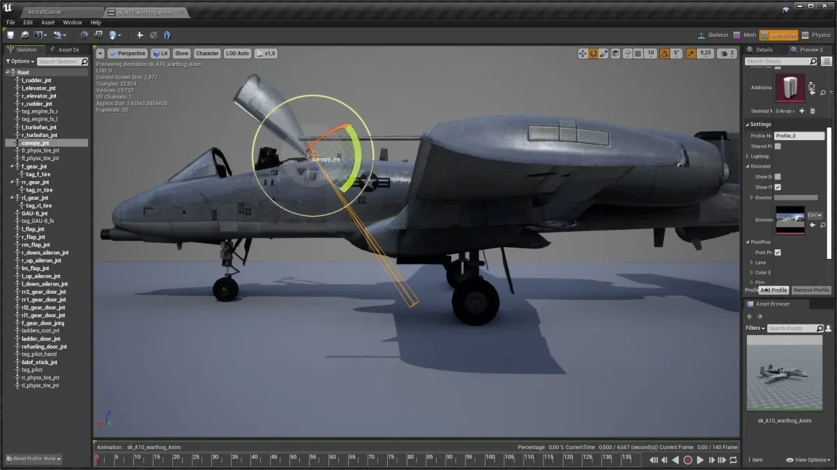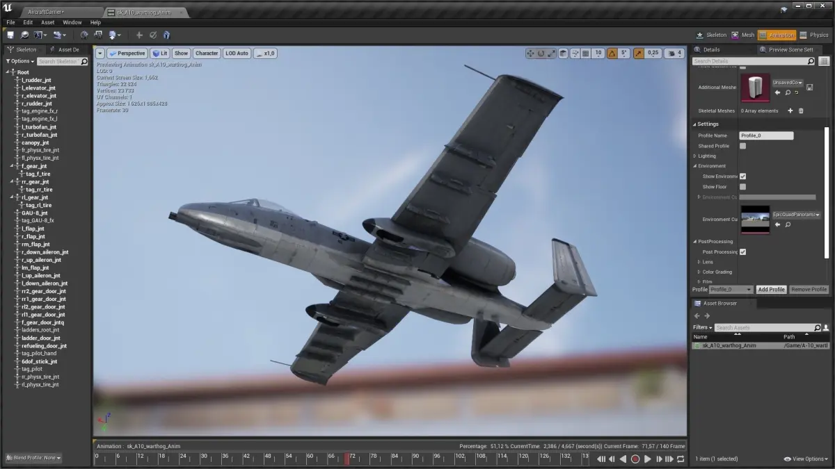 A-10 Warthog or Thunderbolt with cockpit details is created with 3ds max, rendered with Unreal Engine 4.24 in real-time