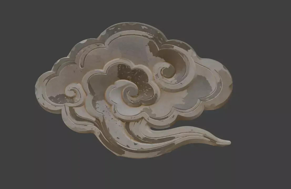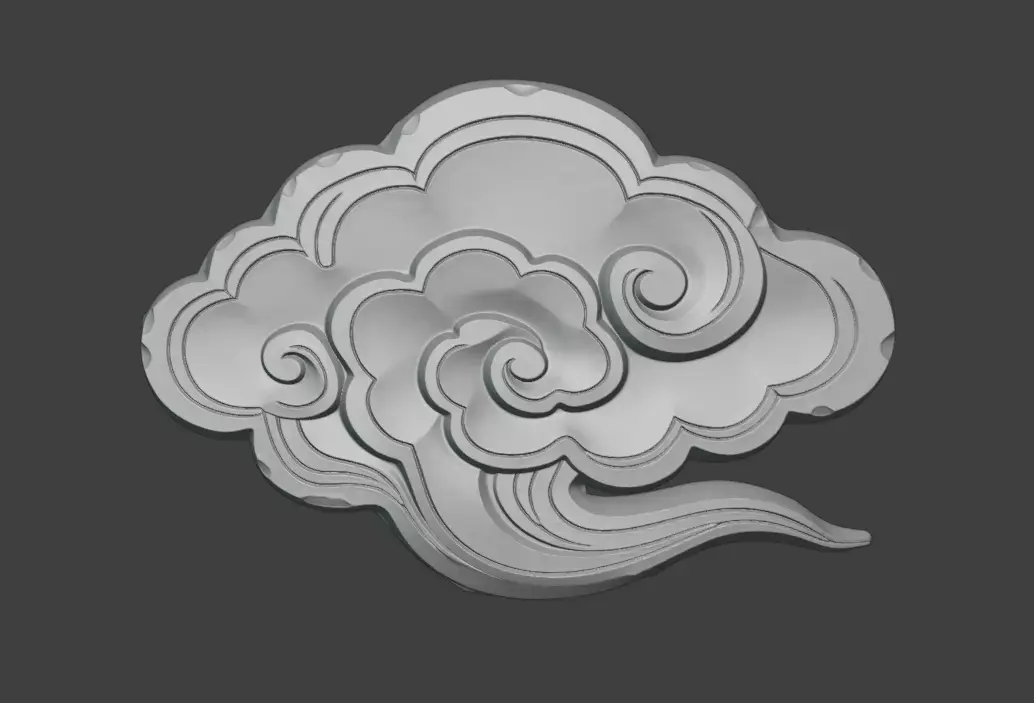 A 3D sculpture of auspicious cloud with cloud pattern decoration 3D print model