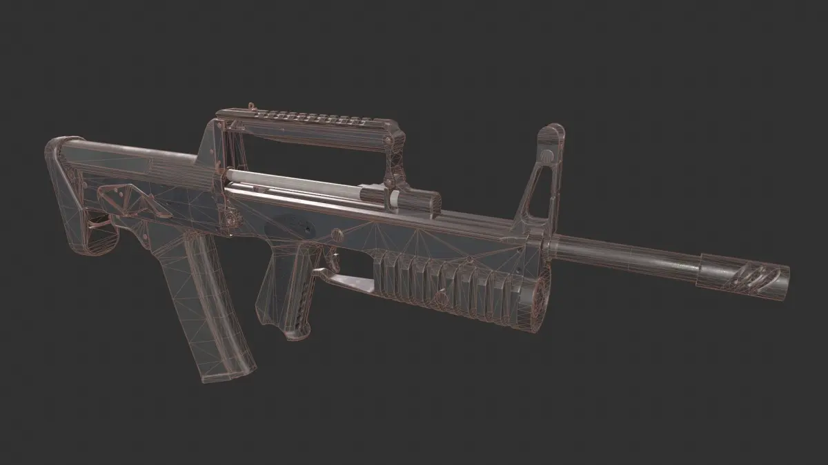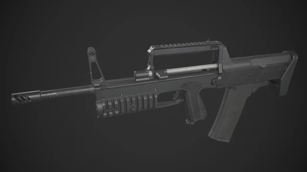 Game-ready A91 bullpup rifle asset, with PBR textures included in the files. This has 7062 polys (12526 tris) and 6733 vertices.