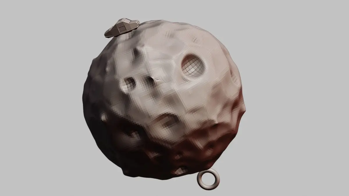 A car on the moon for your keychain. Its dimensions are :X: 68.3 mm.Y: 56.2 mm.Z: 56.6 mm.It is ready to print. I am sure of that and check it in blender. It has :Non-Manifold :0Intersections :0zero faces and edges: 0non_flat faces :0Thin faces :0Sharp edges: 0I tested in Cura, too, and everything is good.I hope when you print It not have any problem. It would be more beautiful with colors.