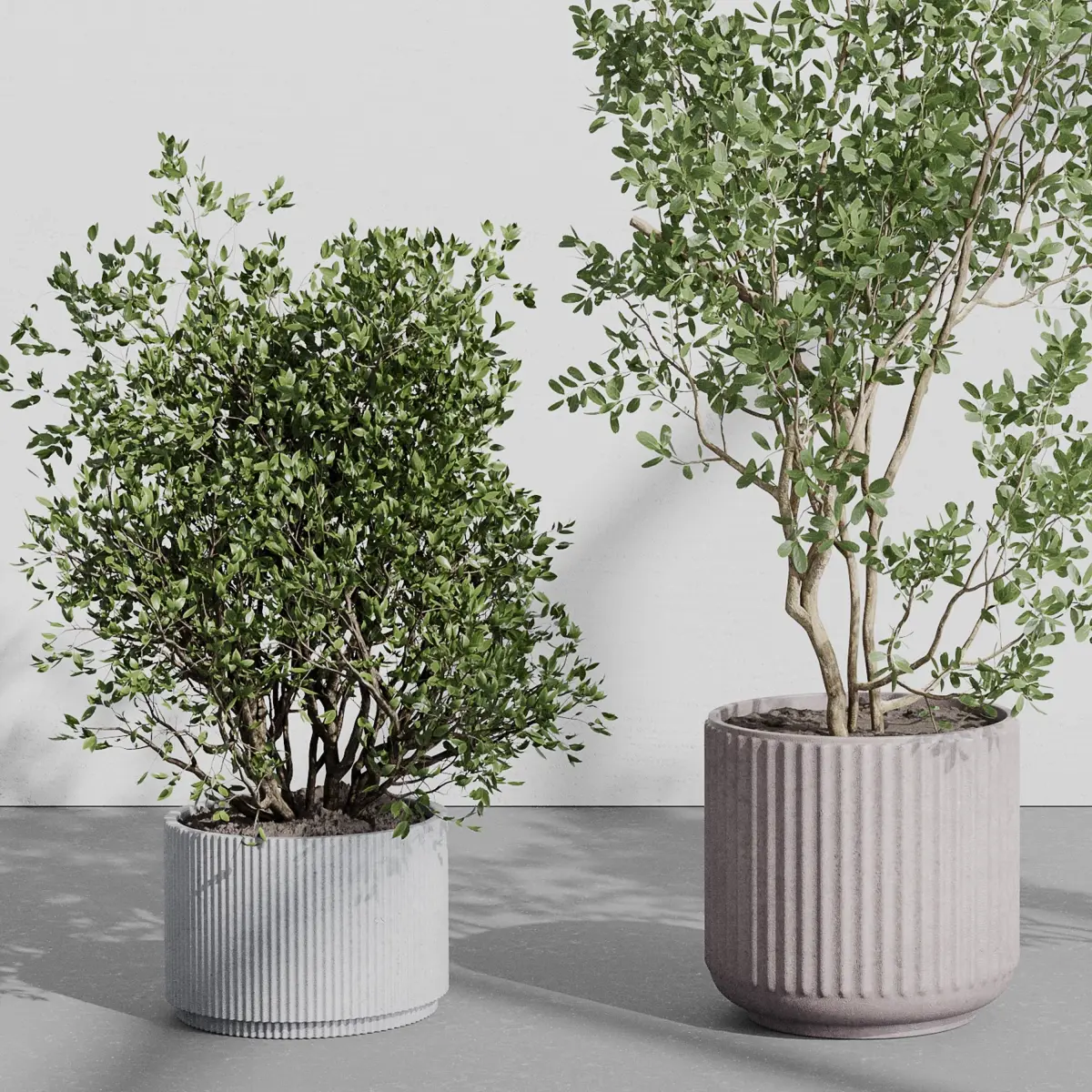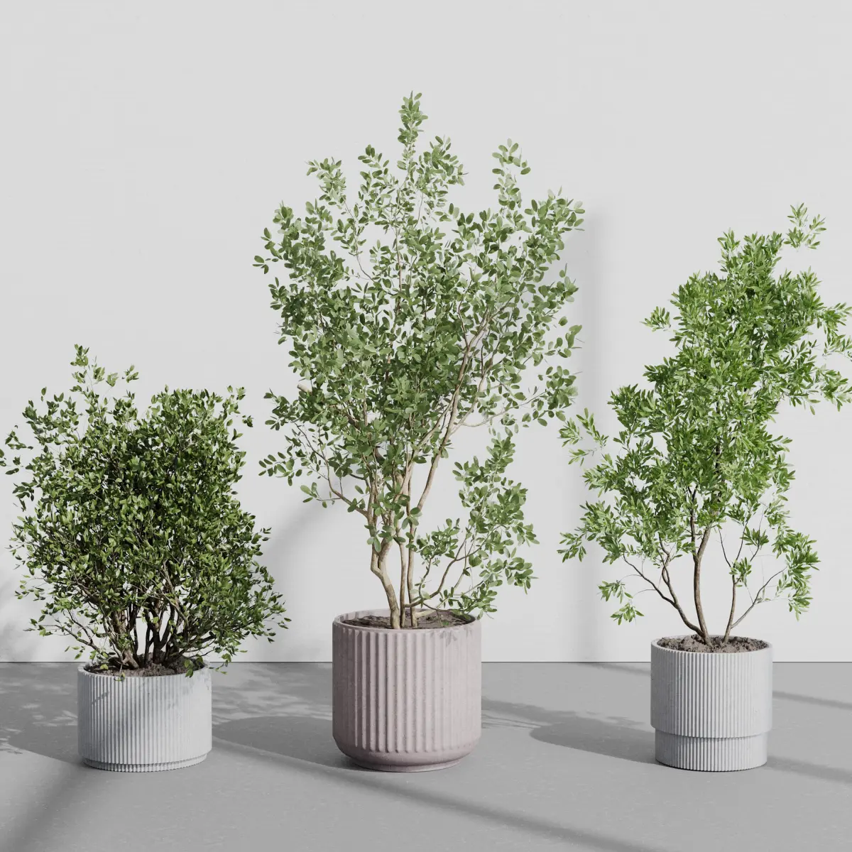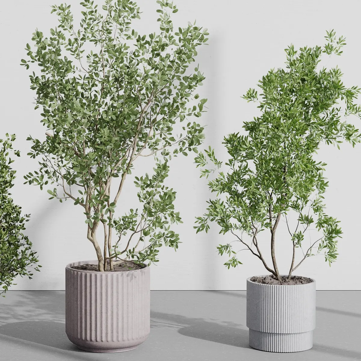 A Collection Trees in a concrete dirty vase - indoor plant 395