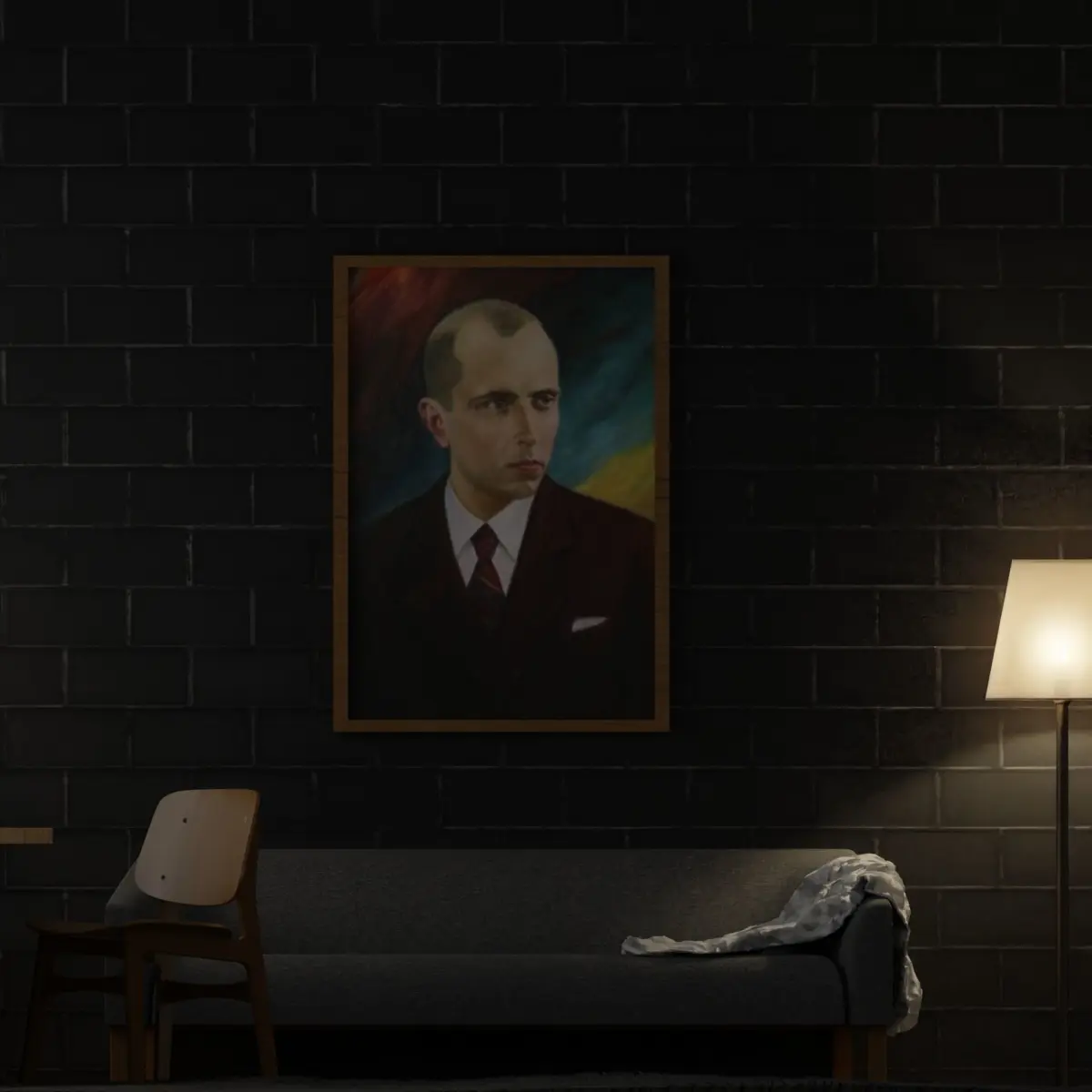 A cozy room-Ukrainian hero Bandera-low-poly-realistic-textured-materials-optimized