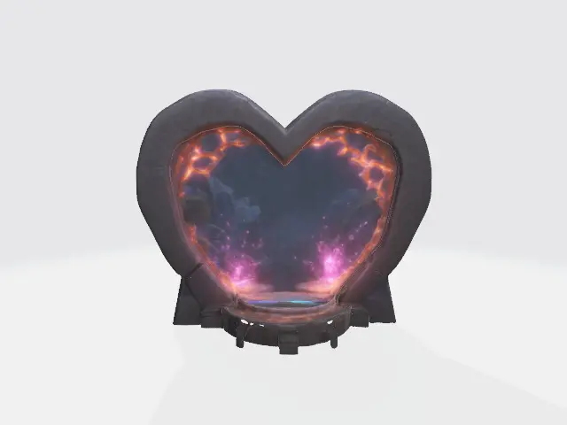 A heart-shaped portal radiating a soft, magical glow, perfect for fantasy or romance-themed worlds