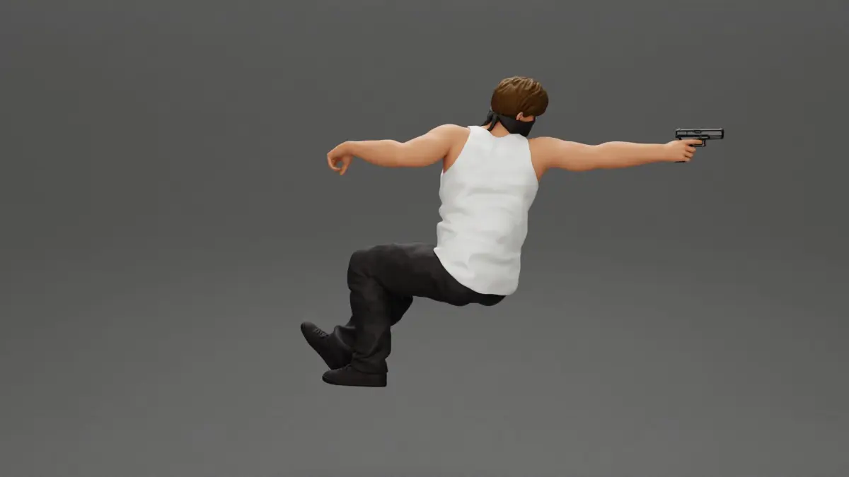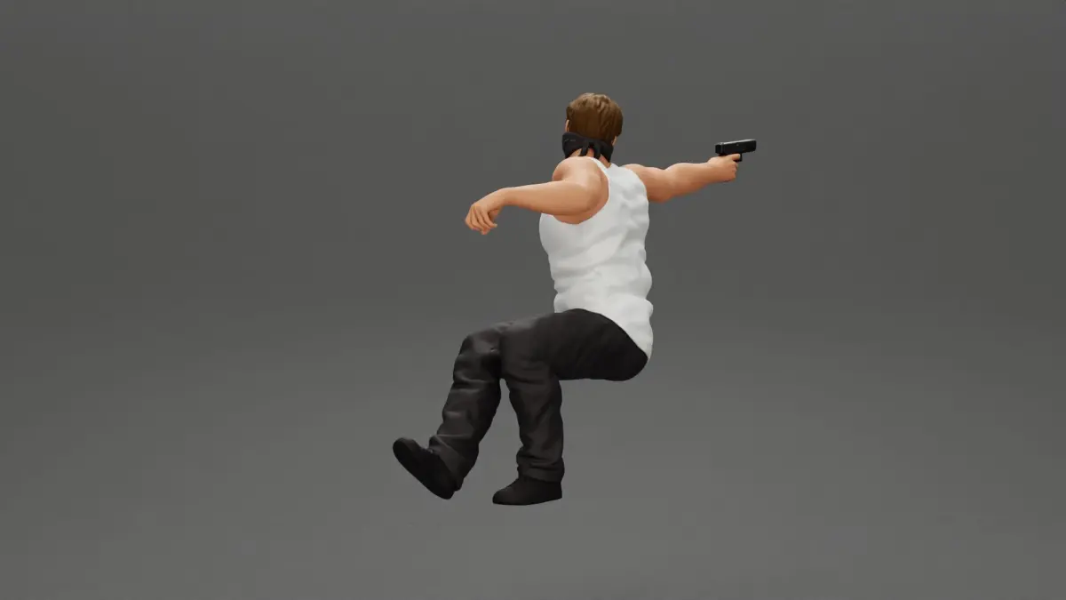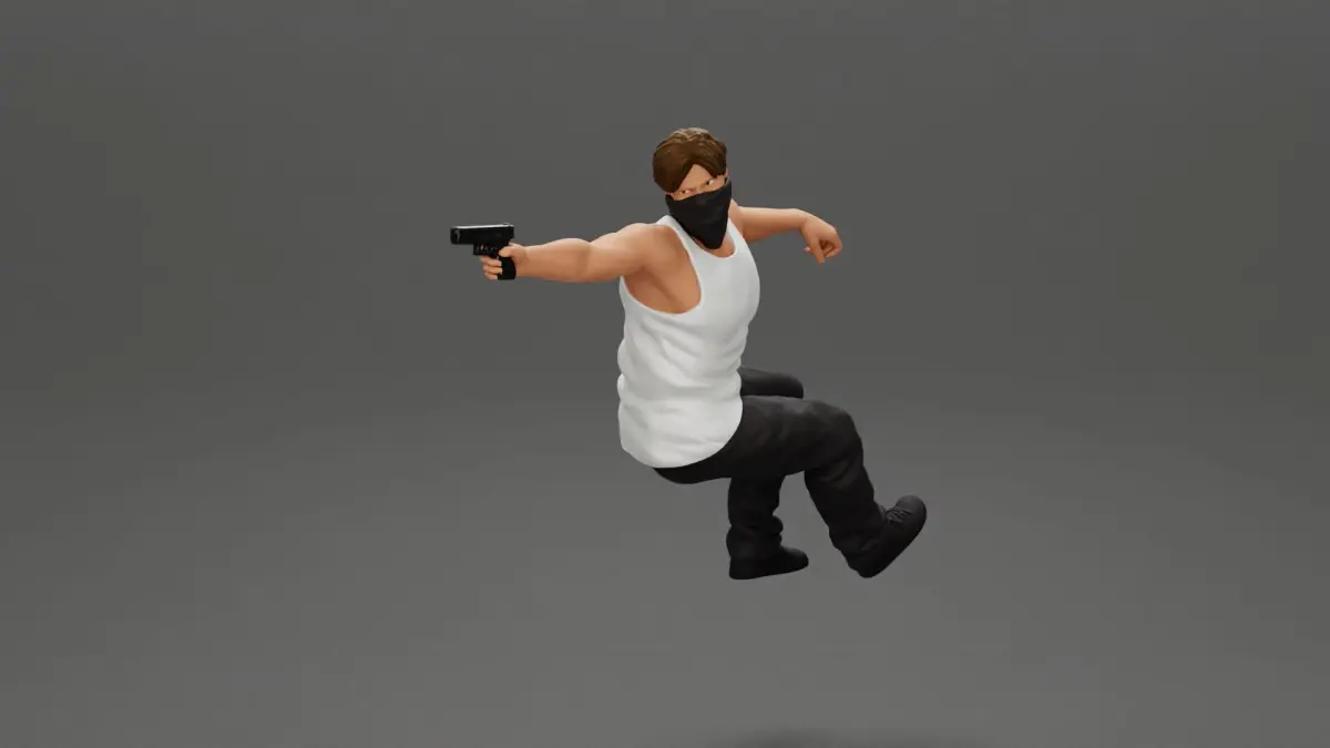 A masked gangster man riding in a car and holding a gun 3D print model