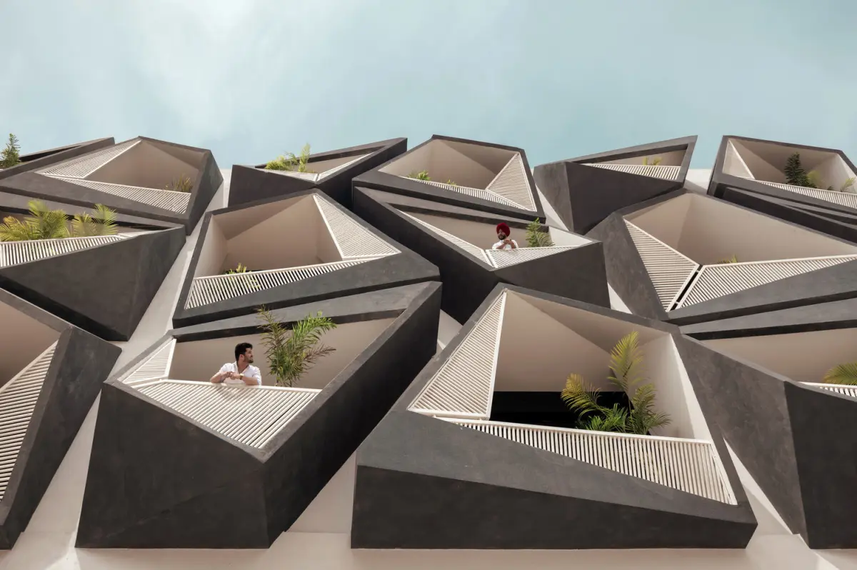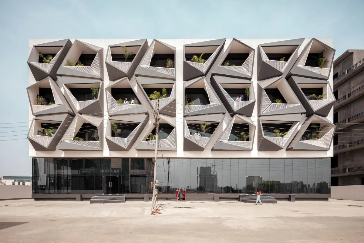 An intermingling game of fractals cubes enthrals every eye in Sector 82, Punjab. Studio Ardete, based in Chandigarh, created the Never Never Cube, an exceptional array of grey boxed façade sliced and splayed in random angles in the industrial grooming area. The commercial building focuses on functioning as offices or display centres in the corporate arena. The strikingly remarkable skin of the building implores a classy peppiness into its aesthetic aura.