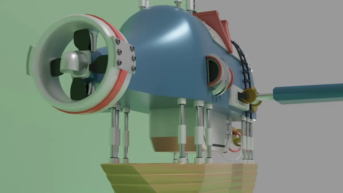 An Original Desgin of mine. It's a mechanical whale, which is also a submarine. I was thinking of going for something Steampunk style and this is what I ended up with. I know the materials are not the best. But there is also a scence where I tried doing some cell shading too.