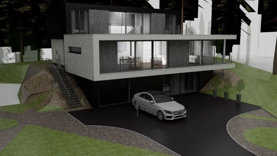 A modern mountain villa Low-poly 3D model