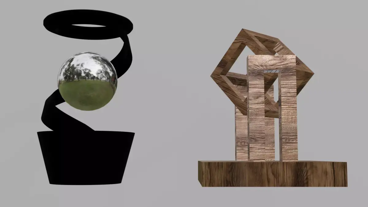 This collection features two beautifully crafted kinetic desk toy models that bring movement and character to any workspace or render scene. The first toy embraces a modern aesthetic with clean lines, a deep black finish, and a perfectly balanced chrome ball that catches and reflects the light with striking realism. Its minimalist design conveys precision and sophistication, making it an ideal accent for contemporary environments.