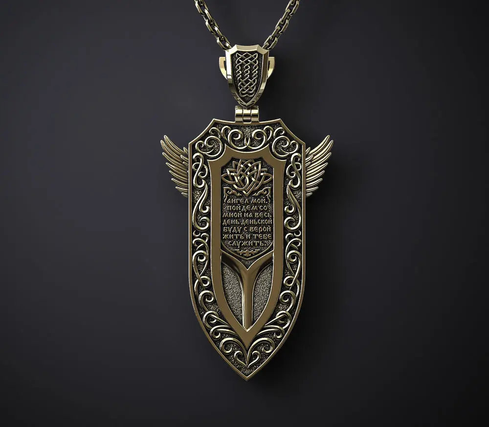 A PENDANT FEATURING AN ARCHANGEL STRIKING A DRAGON