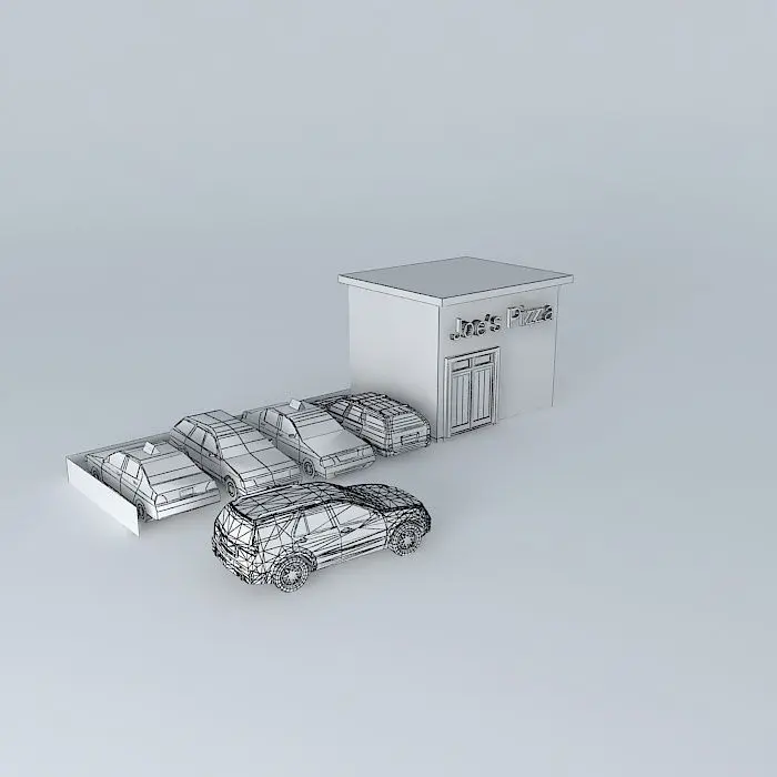 This 3D model was originally created with Sketchup 8 and then converted to all other 3D formats. Native format is .skp 3dsmax scene is 3ds Max 2016 version, rendered with Vray 3.00 A Pizzeria with some cars there. Thanks to the authors of the cars. One car is actualy by myself.