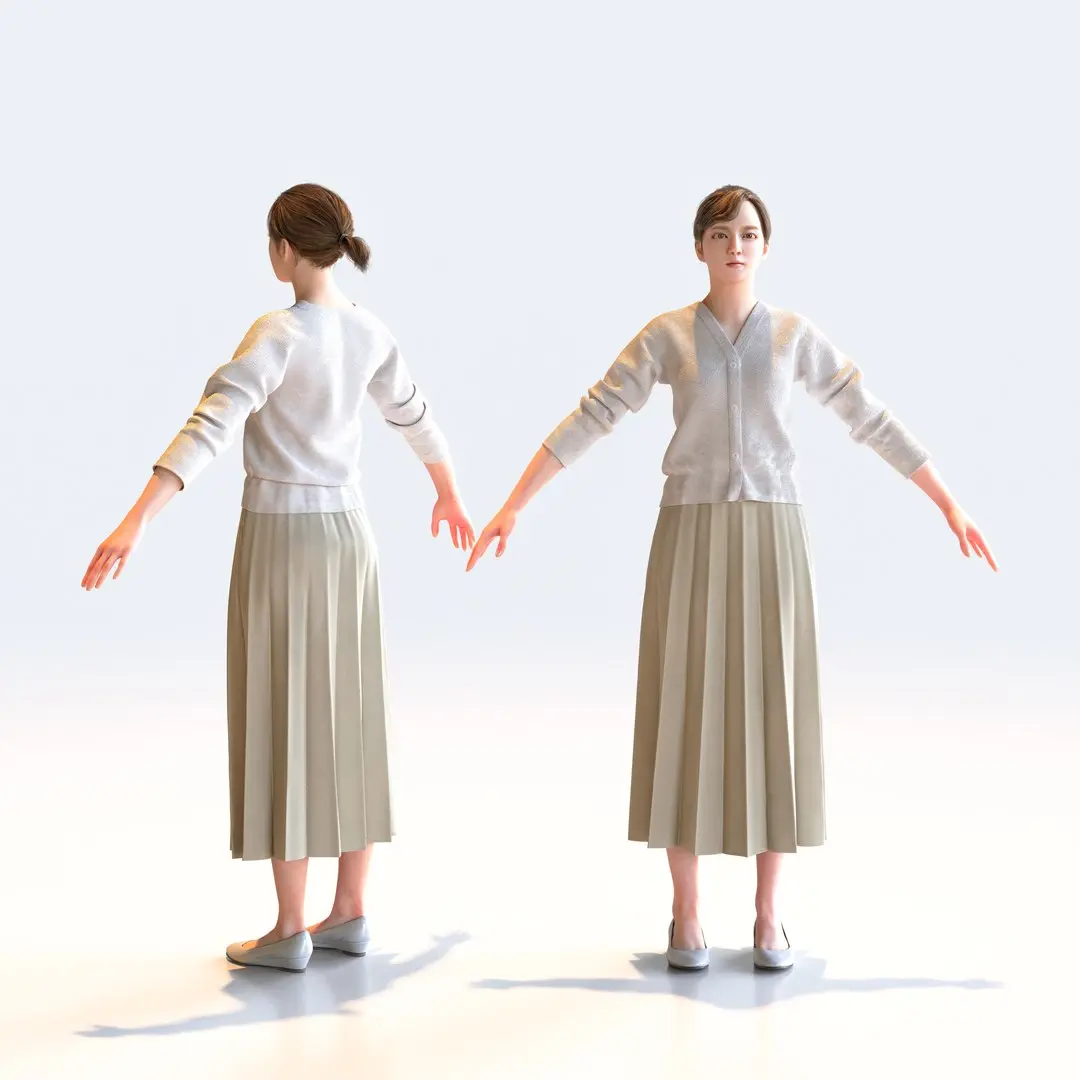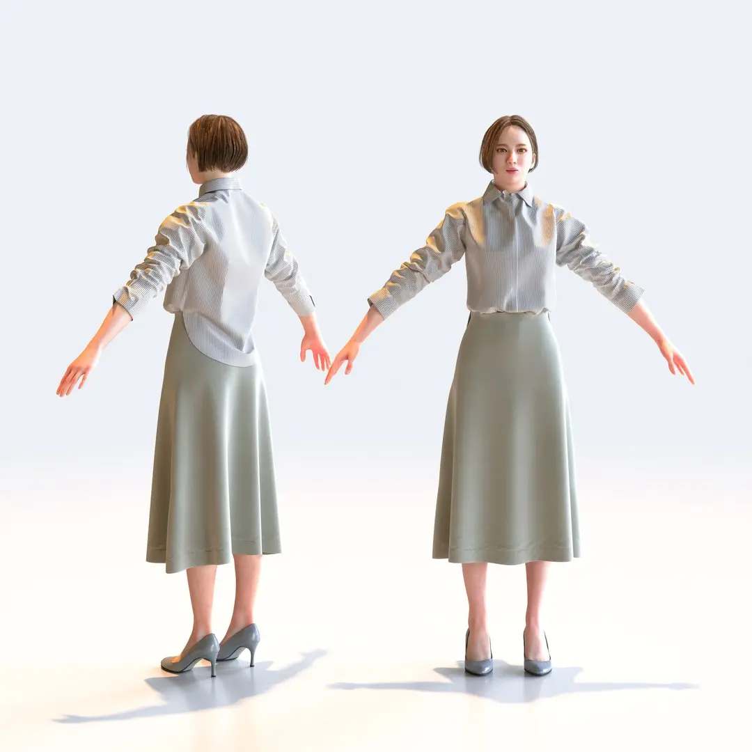 A-pose Asian Business Woman 3D models for architectural visualization scenes and CG projects(VR, AR, games).