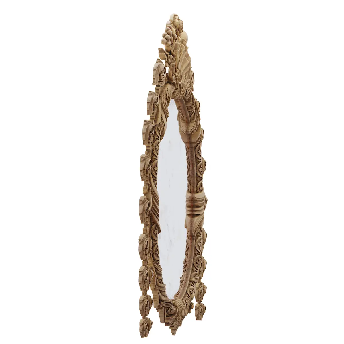 The beautifully proportioned frame, carved with a large scallop shell cresting, topped with carved fruits, foliage, and pomegranate, with lolloping acanthus carved detailing, trailing gracefully down the flanking sides of the oval frame. Enclosing a lightly foxed mercury plate.