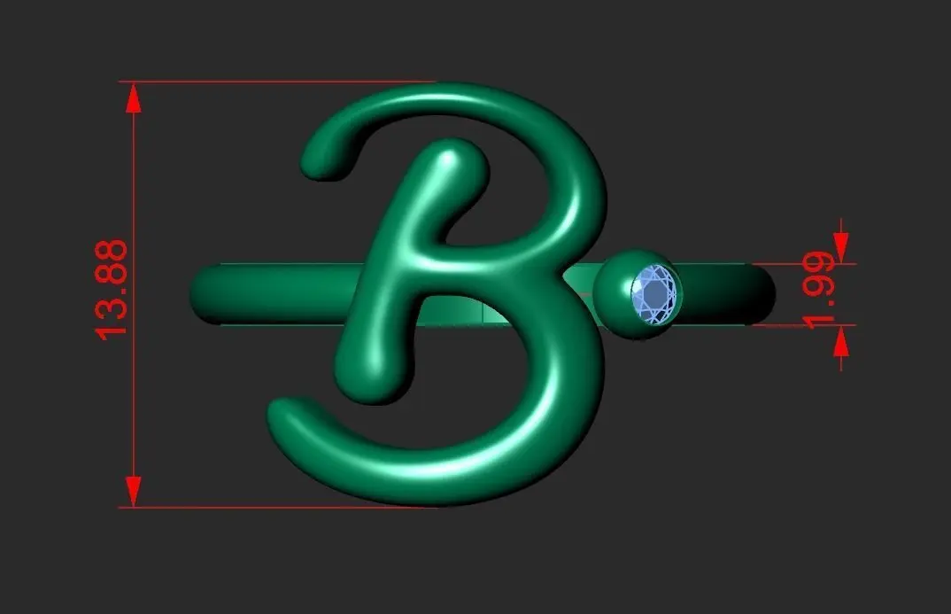 A RING WITH THE LETTER B AND A STONE Printable Model 3D print model