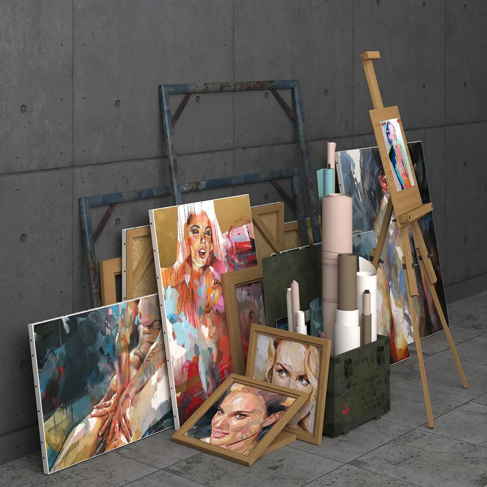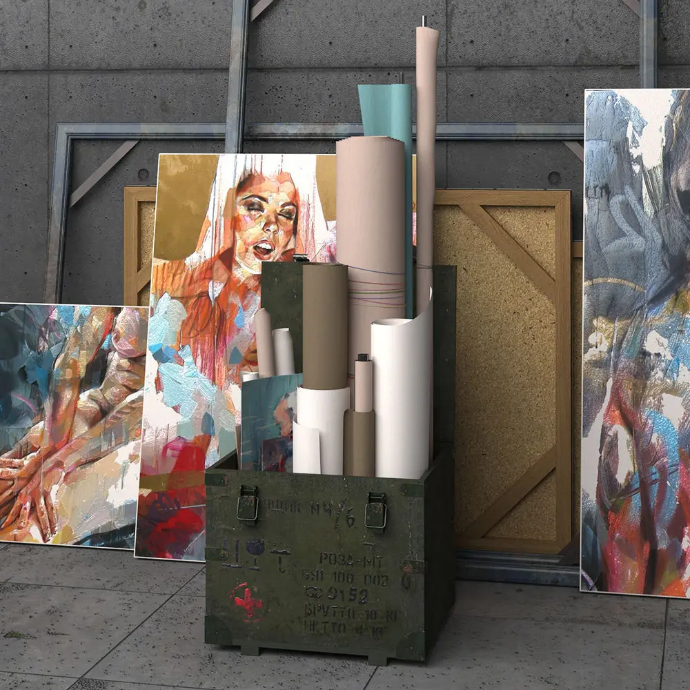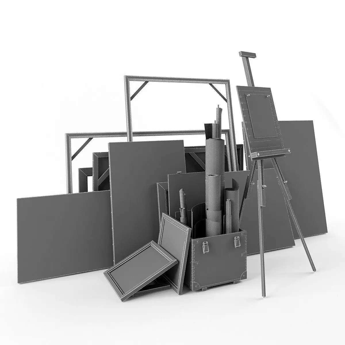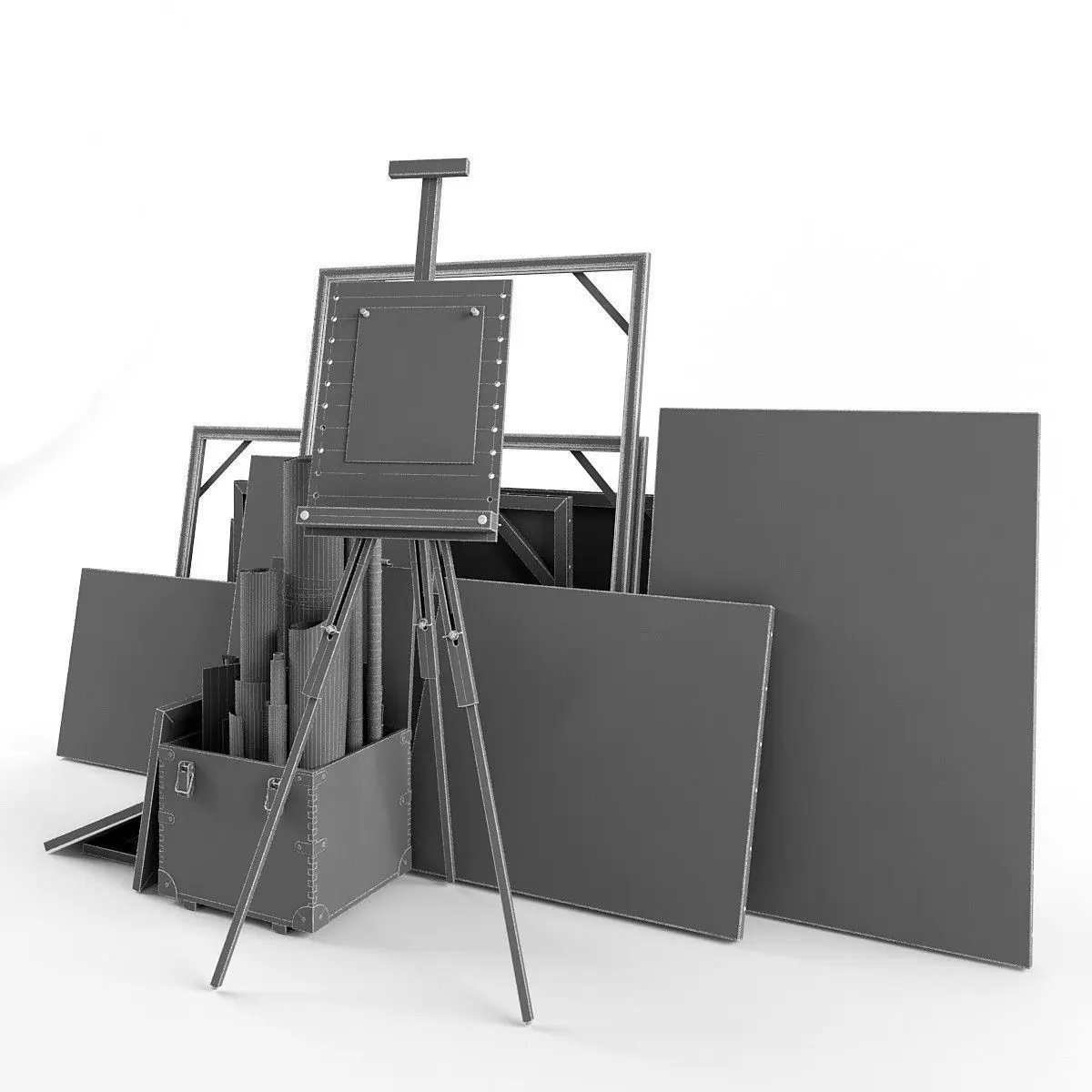 Number of polygons the whole scene 223 000 a box with rolls 78 000 Easel 62,000