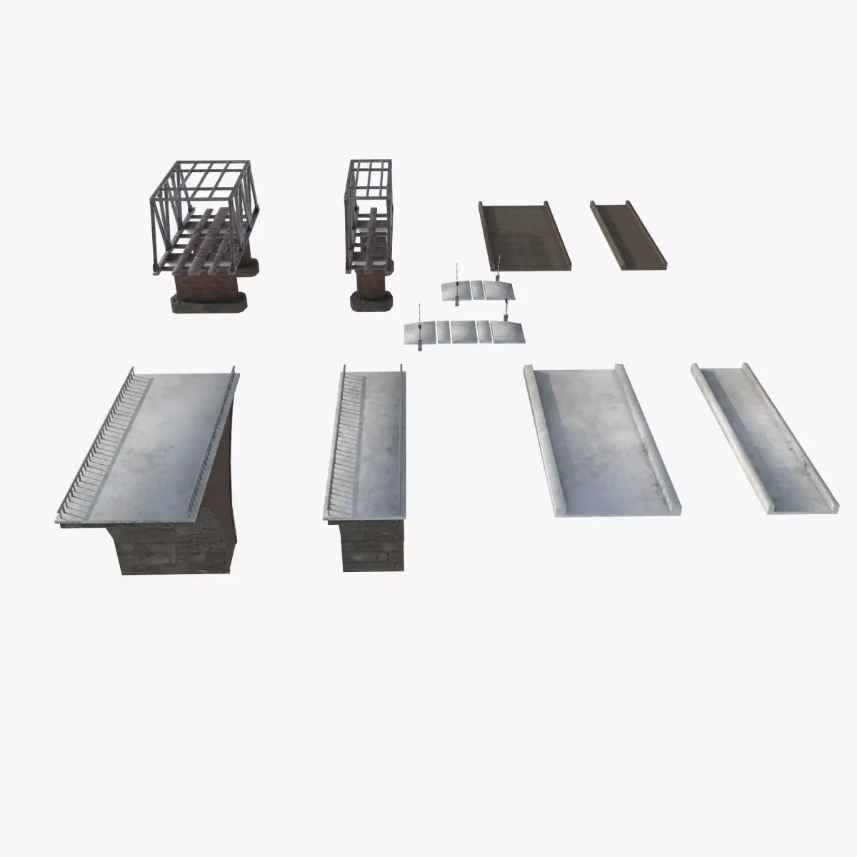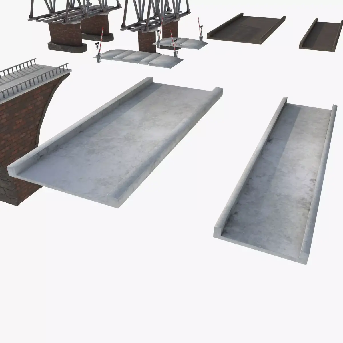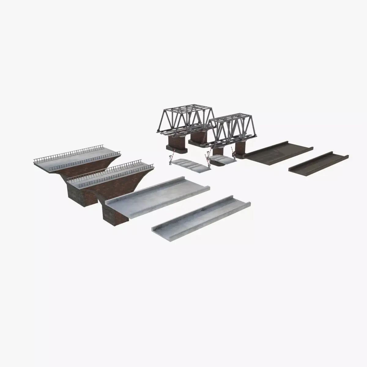 Low poly set of railway bridges and crossing.