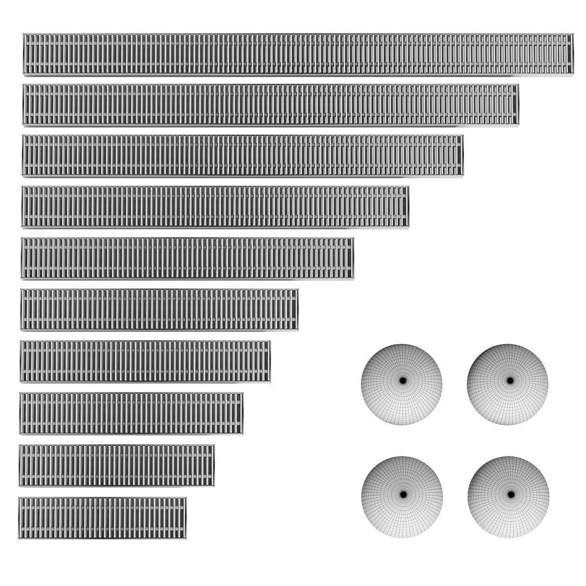 A set of water, floor convectors. 600-2000mm. 4 colors. 10 models