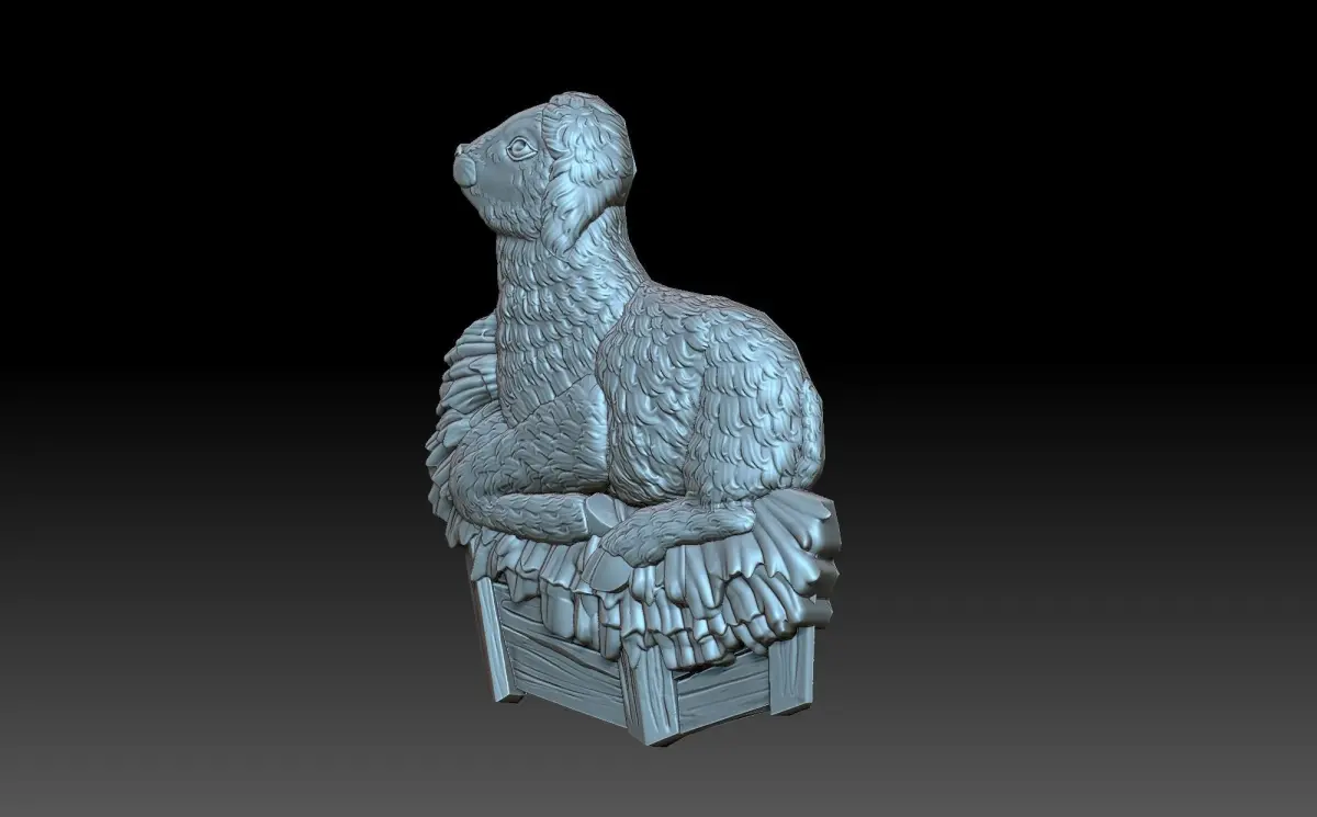 3d bas-relief model, a little sheep lying on the hay