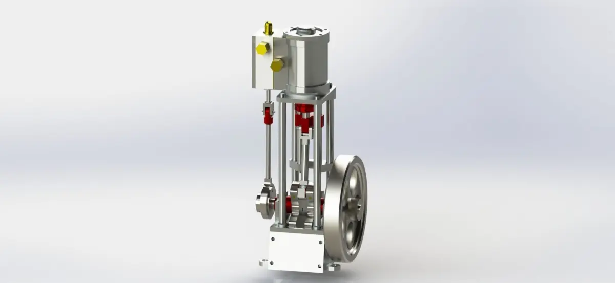 Creating a simple 1-cylinder vertical steam engine with a slide valve involves designing a vertical cylinder, a piston, a crankshaft, a connecting rod, a slide valve, and an eccentric mechanism to drive the slide valve. Here's a step-by-step guide to create a basic model: