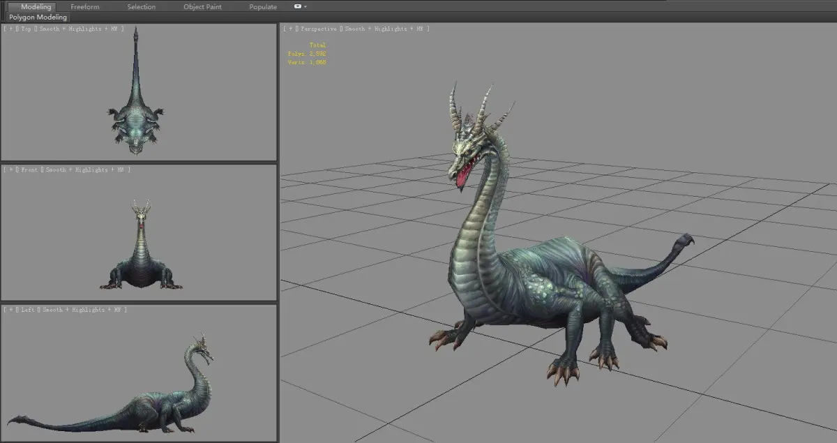 A six legged dragon monster - mosasaur Low-poly 3D model