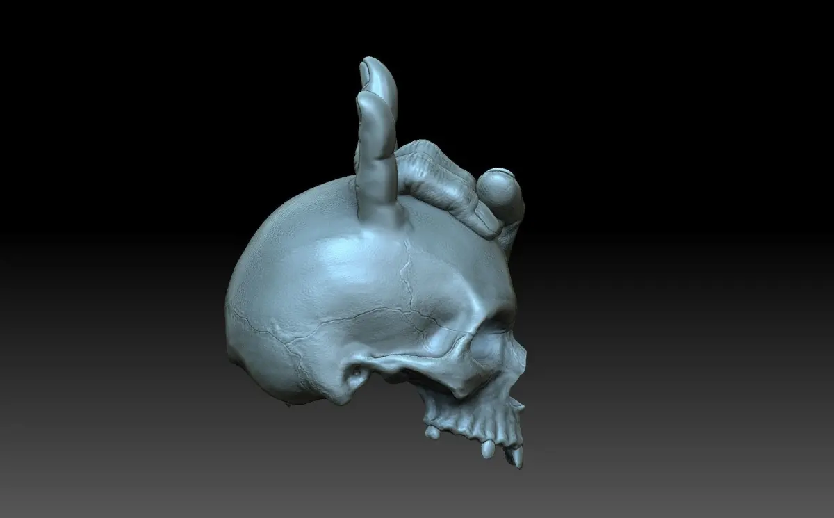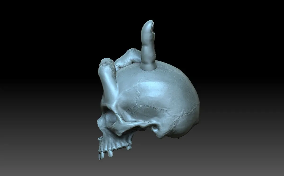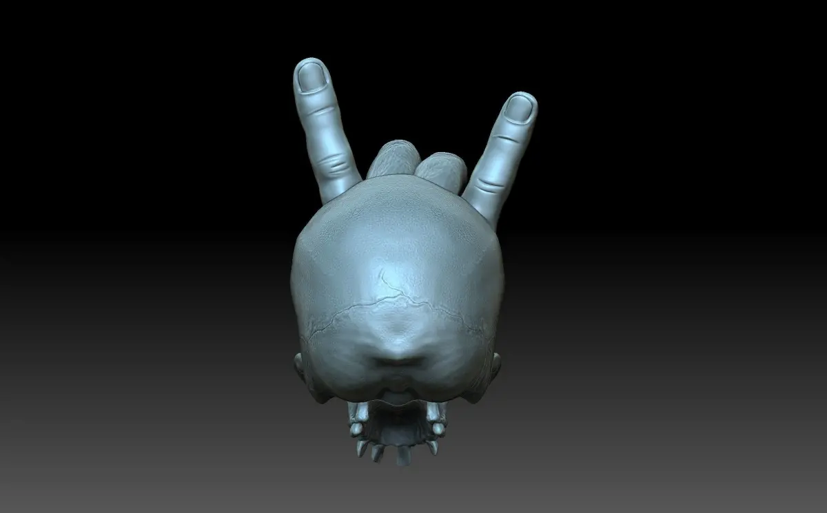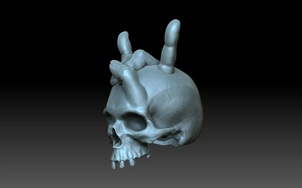 3d model of a skull with horns. A Goat gesture. Horns from the fingers of the hand. the 3D model has a void inside to reduce the weight of the product.