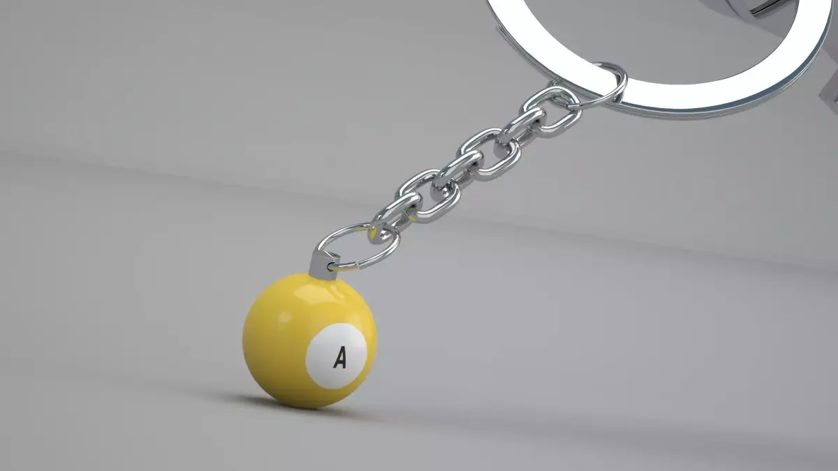 Realistic 3D Model OF A Pool Snooker Ball with Keychain