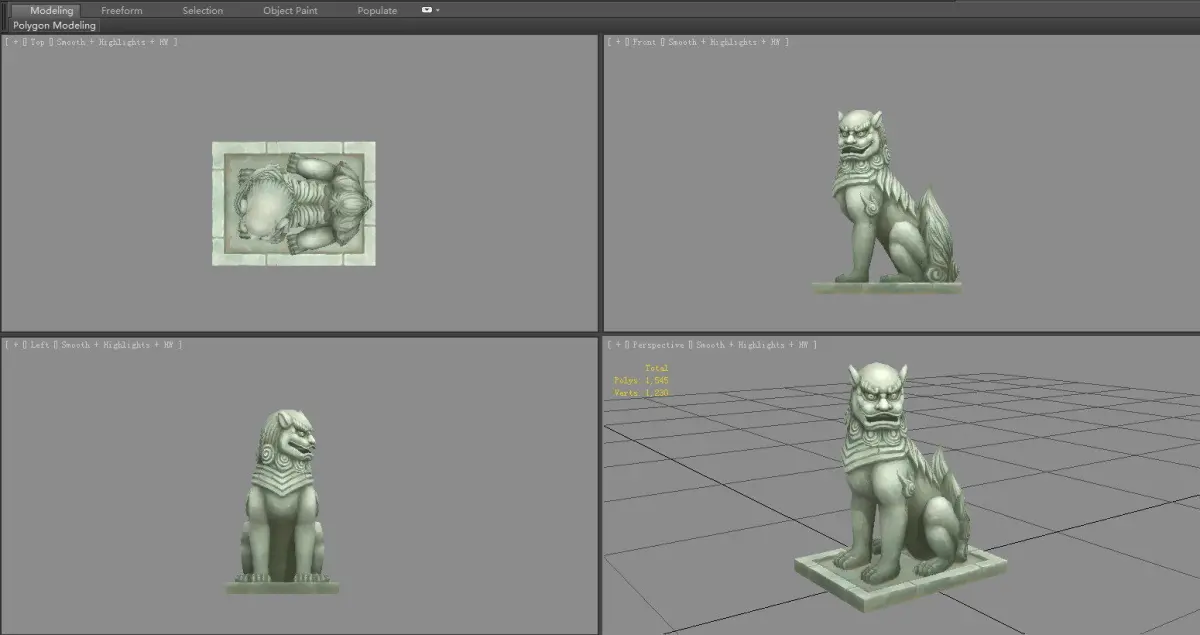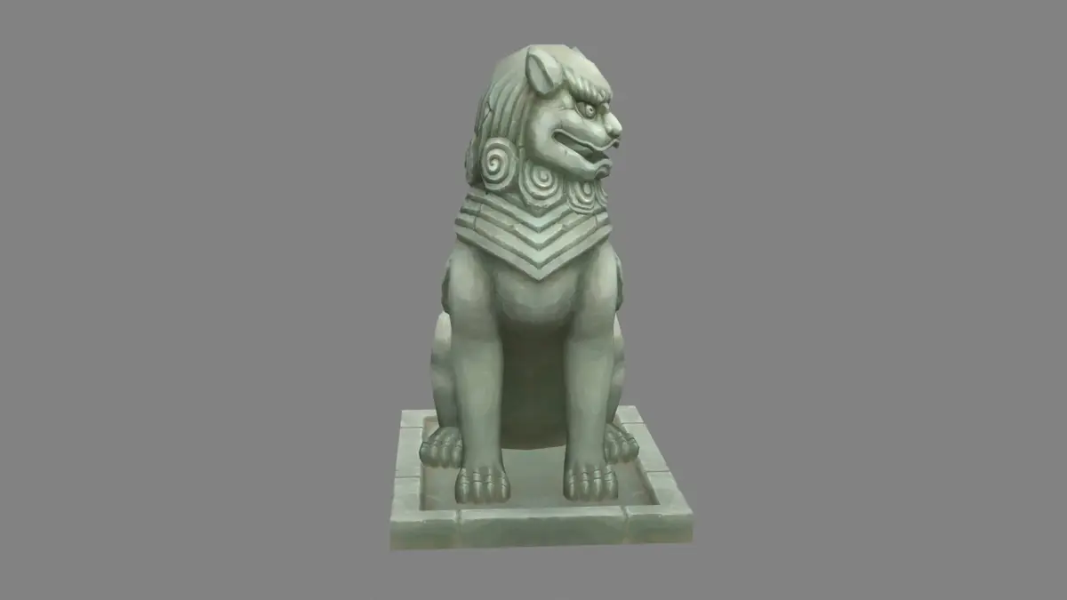 A squatting stone lion sculpture Low-poly 3D model
