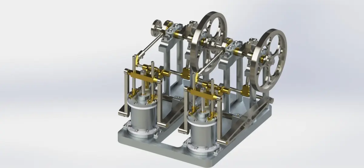Complexity: The addition of a second cylinder and associated components adds complexity to the design, potentially affecting maintenance and potential failure points.Efficiency: While an improvement over single-cylinder engines, this design might still lack certain efficiency optimization features found in more advanced engines.Twin-cylinder side beam steam engines were used in various industrial applications during the Industrial Revolution. While they have been largely replaced by more advanced technologies today, they remain an important part of engineering history. If you're interested in learning more or working with such an engine, studying historical references and engineering principles will provide you with valuable insights.