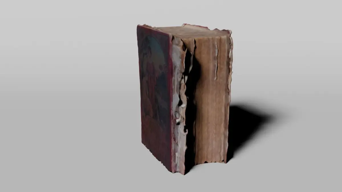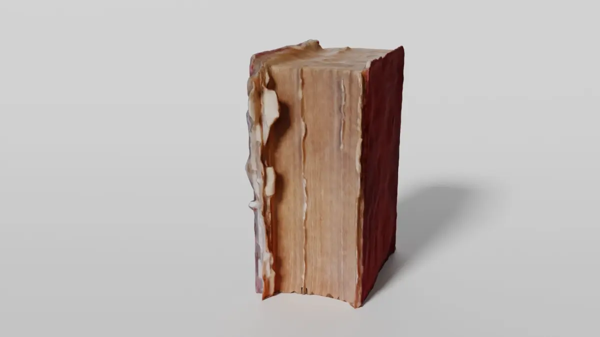 Photoscan model of a historical weathered book. Textures and PBR materials included. Other file formats is x3d. Made with Blender 3.4 based on Photoscan data
