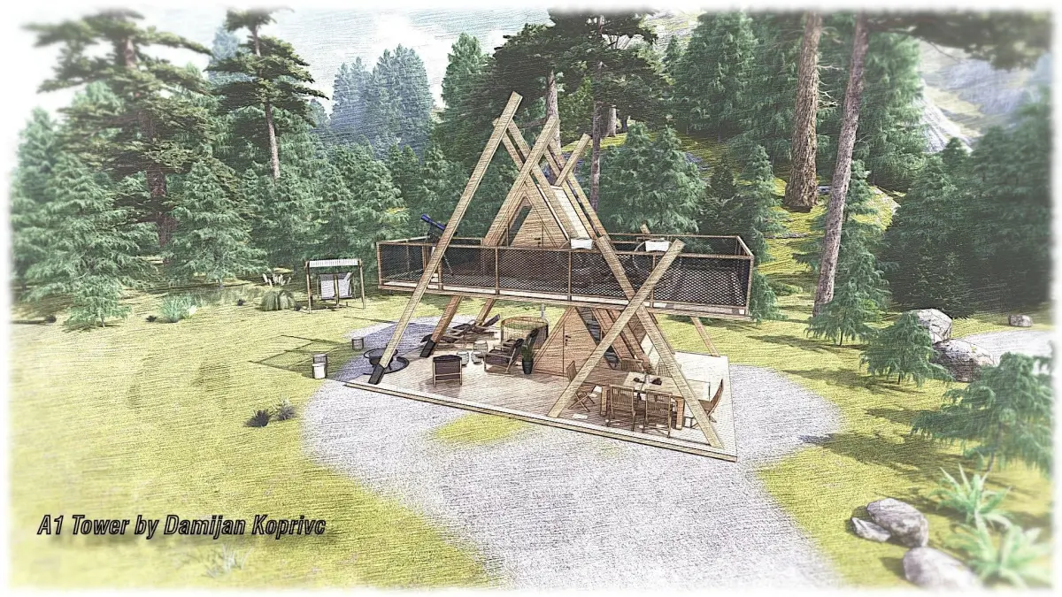 Modern designed glamping a frame tower, vacation house, tiny house, with a hot tube and fire pit, lounge, pool terrace. Modern designed glamping a frame, tiny house, vacation house with a hot tube and fully furnished interior, firepit, terrace... can be produced in Slovenija and can be ordered and placed any where in europe.Or you can build it yourselve. Unique designed,modern,highly detailed 3D model with lot of useful 3D models and furniture in it. Model contains house with all the furniture. SOME MODELS LIKE NATURE, PEOPLE, FIRE, DECORATION... ARE PROXY MODELS FROM RENDER ENGINE LUMION AND/OR ENSCAPE! * additional models (,fireplace,outdoor lounge,windows,door,hot tube..) included. And some decoration that is also included. Suitable for sea site area as for the mountain areas and all kind of camping resorts. The model is done with SKETCHUP 2020 PRO and rendered withLUMION 10!BEST TO USE WITH SKETCHUP! 3DS Max and Cinema 4d users can import sketchup 2008 file format or fbx or obj... , or ASK DESIGNER FOR ADDITIONAL FORMATS or INFO ABOUT MODEL BEFORA a purchase. All textures appliances and furniture equipment is in high resolution, have been checked and are included in the scene.Textures are compresed in zip file.Model is easy to manipulate and ready to render with LUMION. Real world scale and exact proportions cm. Realistic and correctly scaled! • Excellent polygon & texture efficiency Purchasing this model, you get different formats and permision to use the design i any way you want(royality free licence):skp, dwg,fbx,glb.. or ask the designer for different formats.But best goes with a native sketch up. Be aware, that dimensions are not 100% accurate, because this is for design presentation porpoise, not architectural technical plan. I do 3D concept designs, not architectural plans, but I do try to make it as accurate as possible.