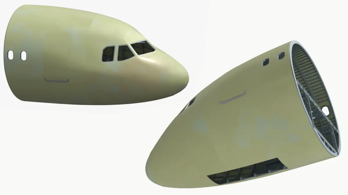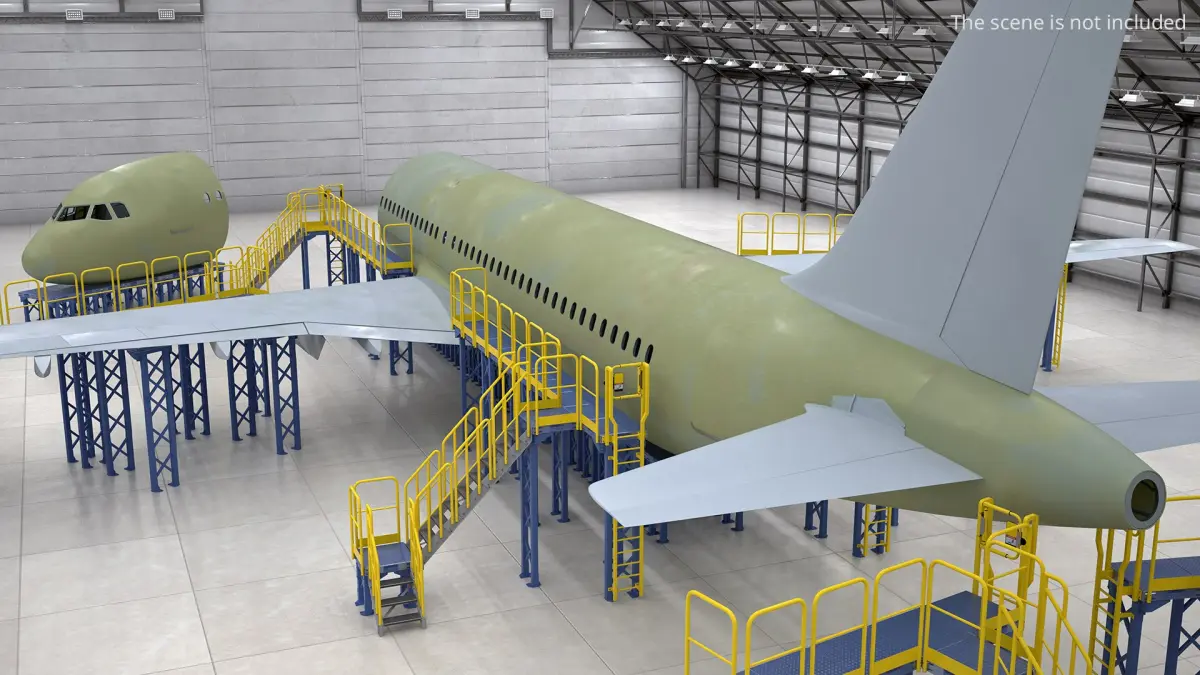 A320 Airbus Forward Cockpit Fuselage is a 3d model of an airplane's front fuselage, showcasing structural elements typical of modern aircraft design.